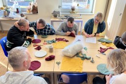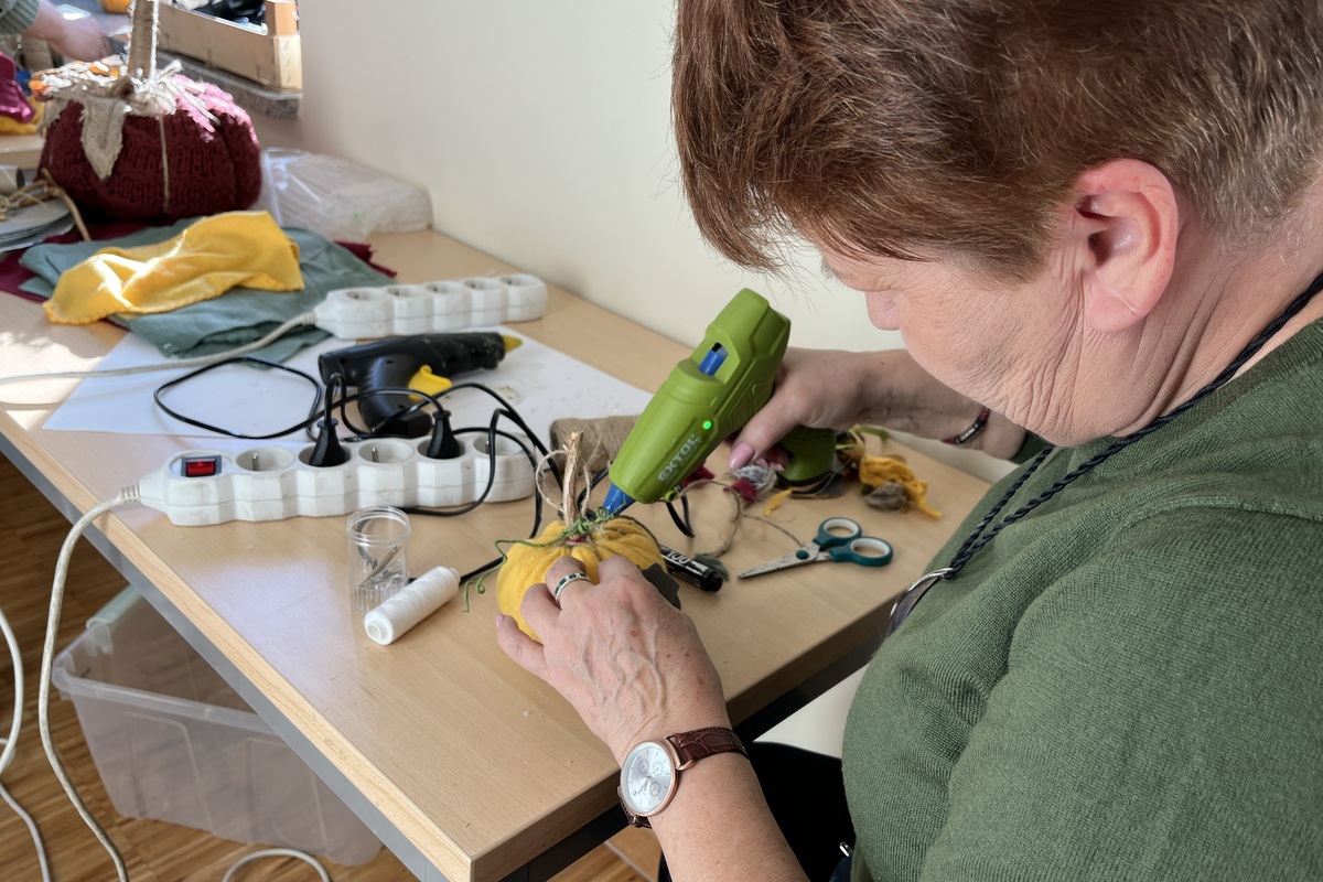 Pod okiem instruktorek – pani Katarzyny i pani Soni z GOK-u – uczestnicy mieli okazję własnoręcznie wykonać ozdobne dynie z materiału. Warsztaty stały się okazją do rozwijania kreatywności, integracji oraz wspólnego spędzenia czasu w twórczej atmosferze.