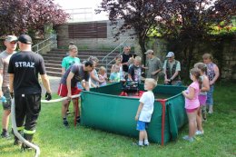 Kurtyna wodna, którą włączyli strażacy dała ukojenie niejednemu maluchowi podczas tego upalnego dnia. Komisariat Policji w Gogolinie udostępnił wóz policyjny i motocykl aby każdy mógł wsiąść i poczuć się jak prawdziwy policjant. Podczas pokazów służb trwały liczne gry i zabawy. Pracownice naszych świetlic przygotowały warsztaty. Przy stoliku z pracami ręcznymi dzieci wykonywały przeróżne ciekawostki z papieru, bibuły, sznurka, kleju itp..... Ustawiła się długa kolejka (głównie dziewczynek) aby upiększyć sobie swoje dłonie i paznokcie, pomalować sobie buzię. Punkt gastronomiczny zachęcał na kiełbaski z grilla, a dla naszych spragnionych milusińskich były przygotowane darmowe napoje, ciastka i lody.