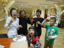31.10.br z okazji halloween postanowiliśmy zrobić konkurs na najstraszniejszą i najpiękniejszą dynię halloweenową. Celem tych zajęć była integracja uczestników oraz mile spędzony wspólnie czas. Dzieci wycinały śmieszne i straszne dynie do których włożyliśmy świeczki. Niesamowite było to jak wyglądały gdy wyłączyliśmy światła. Do tego mnóstwo gier i zabaw zręcznościowych tylko dla odważnych! Nie zabrakło cukierków i innych słodyczy.