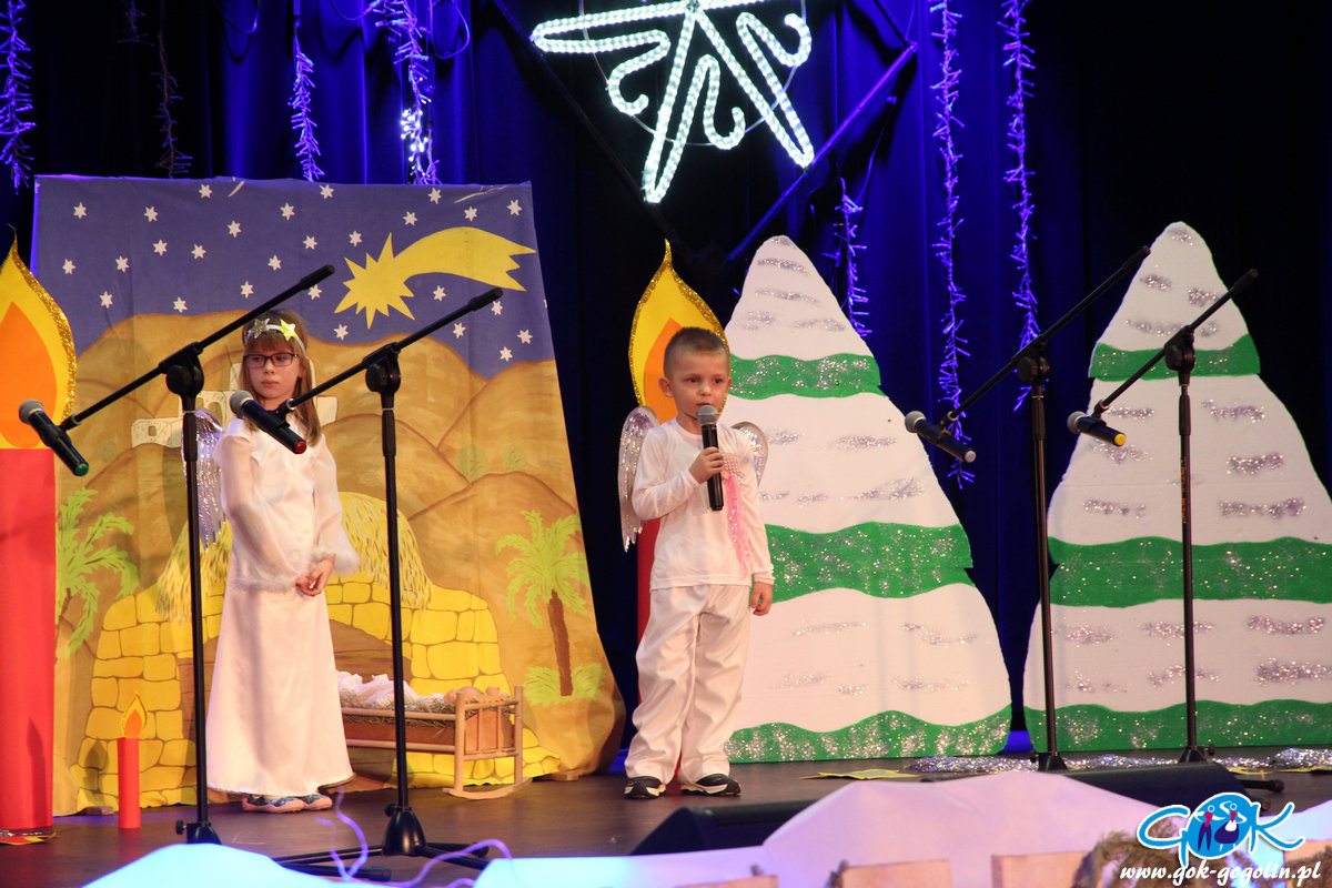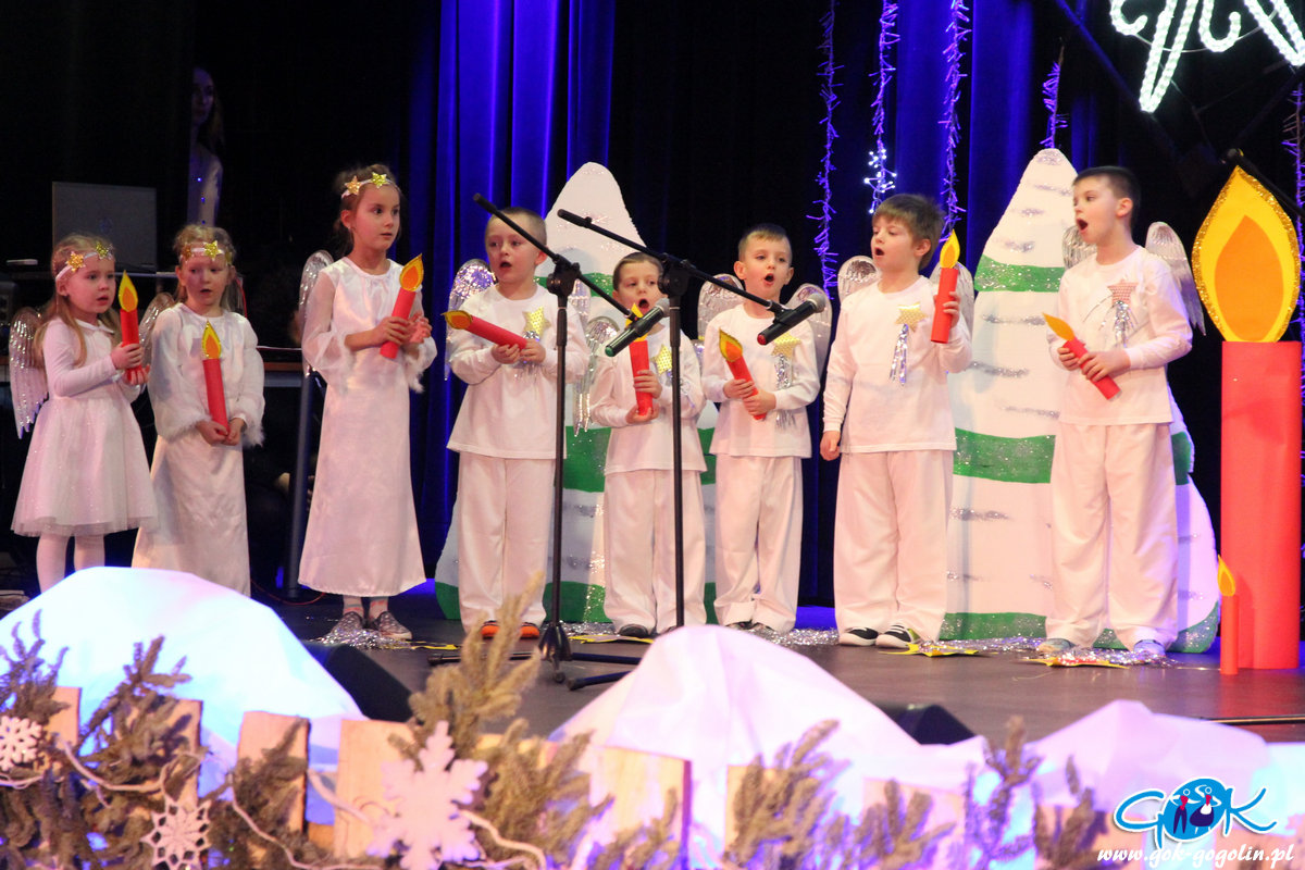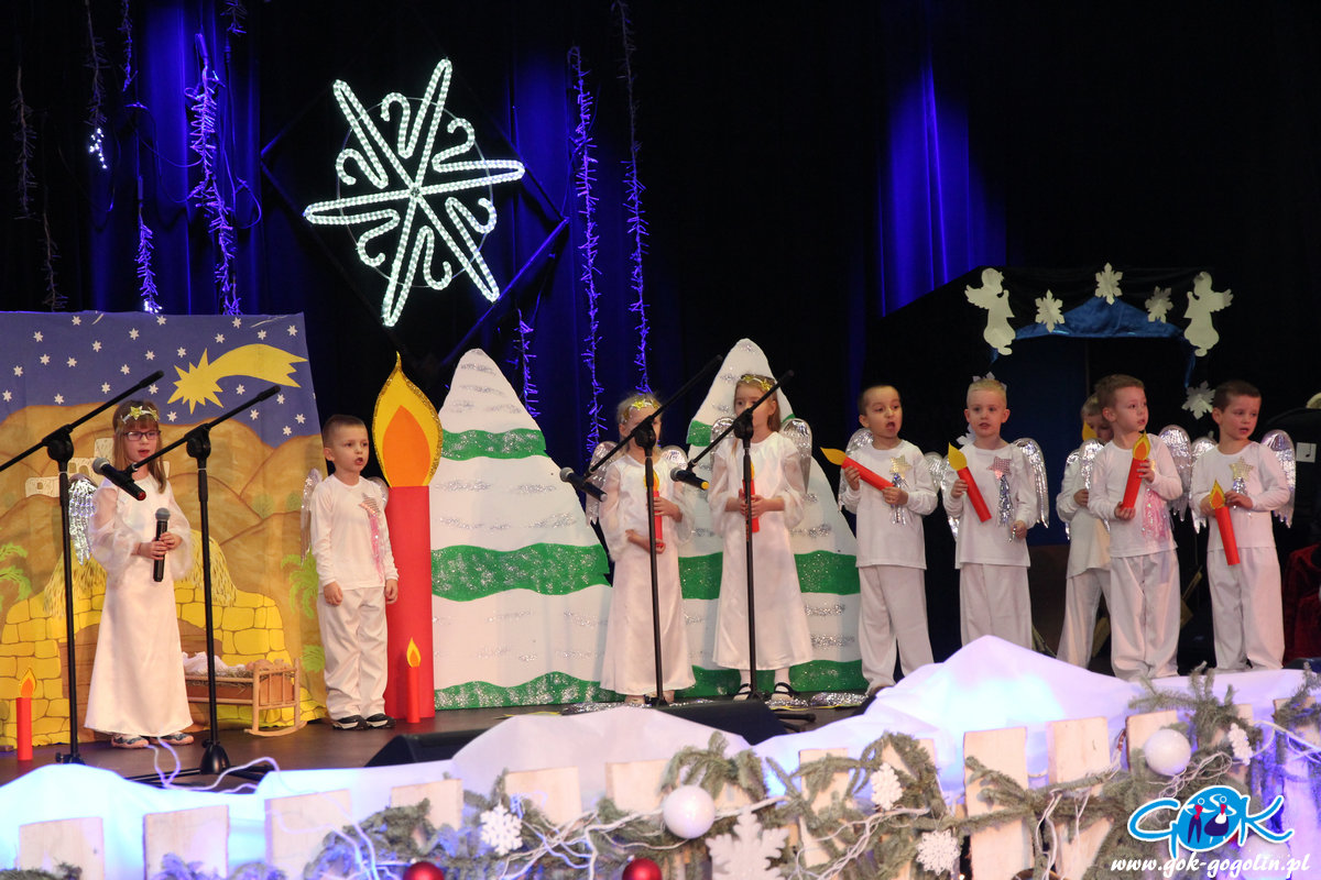 Występy rozpoczęły się od najmłodszych na scenie zaprezentowały się: Przedszkolaki z Oddziału Przedszkolnego przy Publicznej Szkole Podstawowej w Malni, z Publicznego Przedszkola nr 1, z Oddziału Przedszkolnego w Zakrzowie przy Publicznej Szkole Podstawowej Nr 3 w Gogolinie oraz Publicznego Przedszkola Nr 3 w Gogolinie. Były wierszyki, krótkie inscenizacje, świąteczne piosenki i oczywiście kolędy, śpiewane wspólnie z licznie zgromadzoną publicznością. Po występach dzieci z przedszkoli ogłoszono wyniki zmagań przedszkolaków. Komisja jednogłośnie przyznała wszystkim I miejsca.