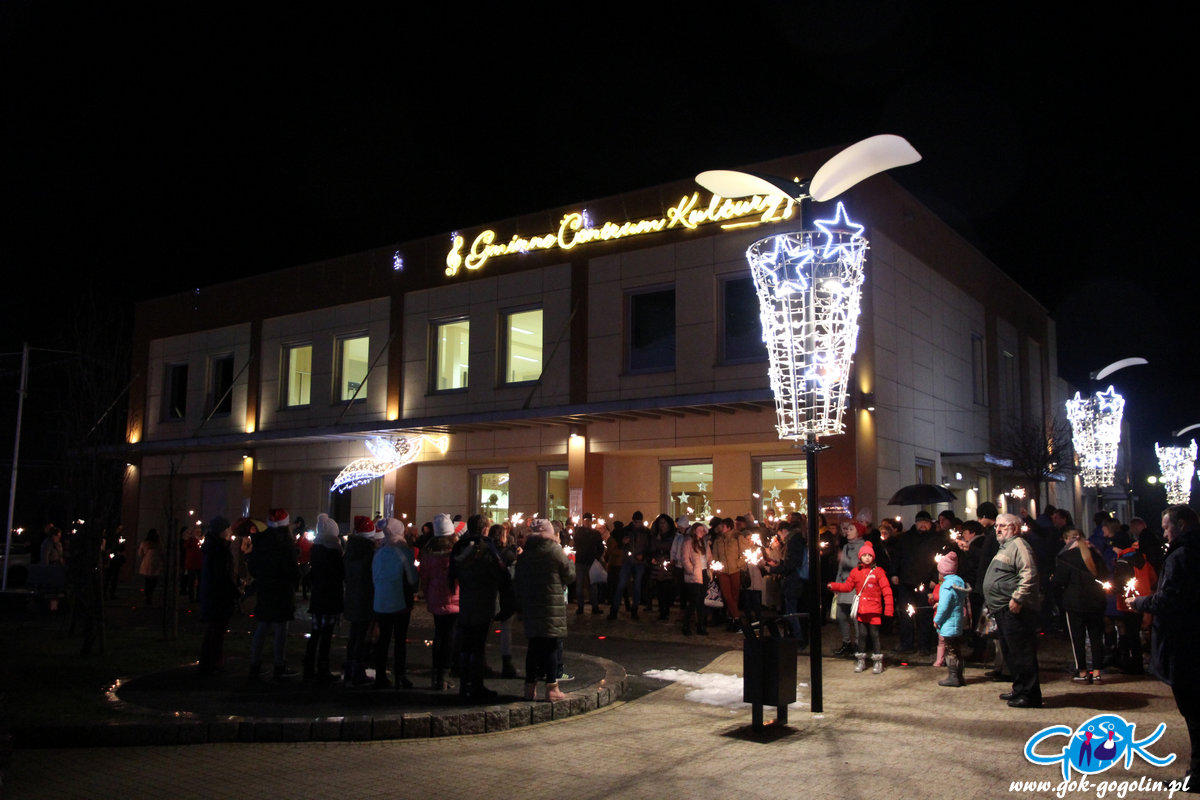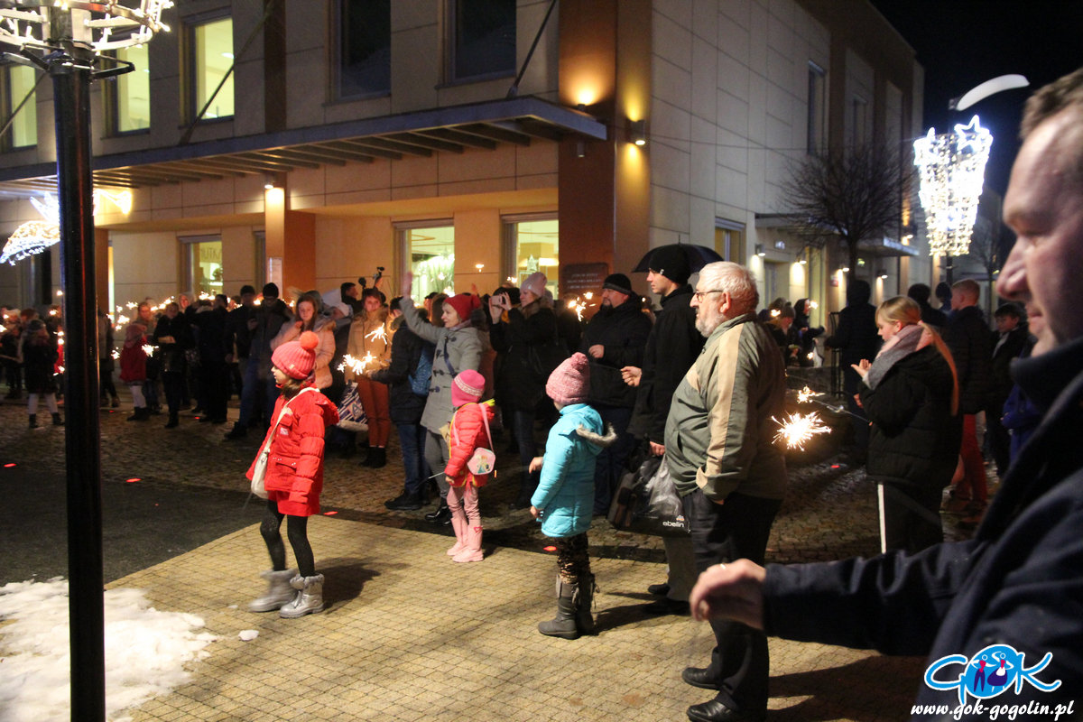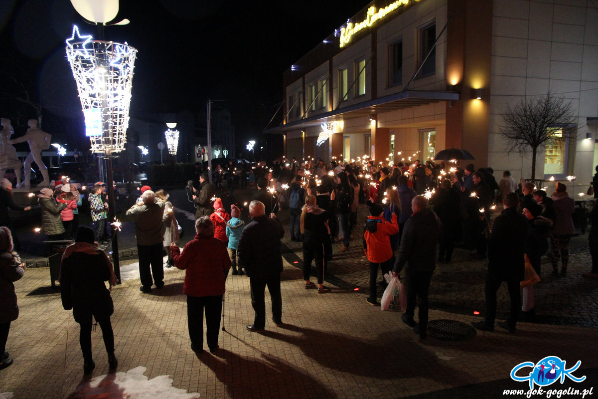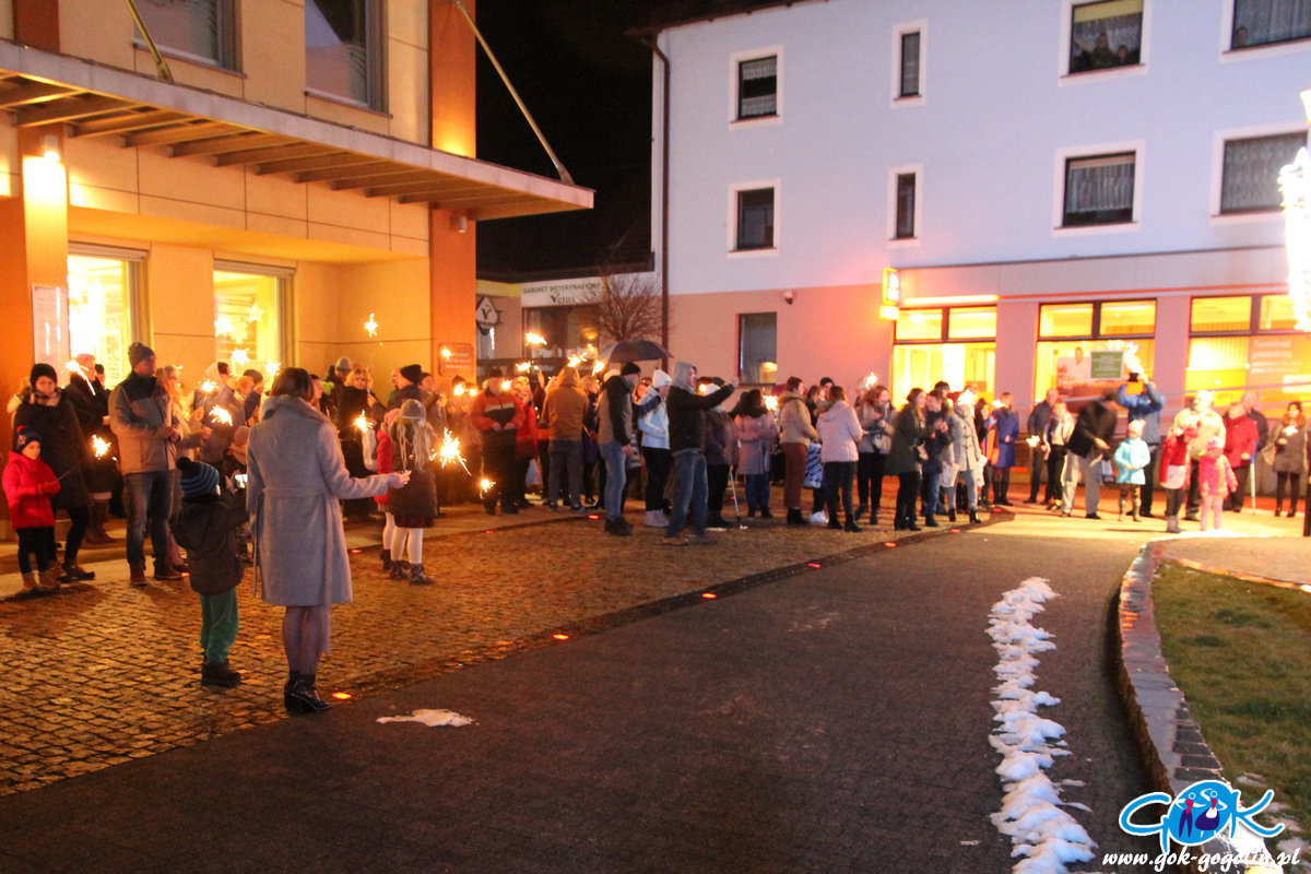 O godz. 20.00 wszyscy wyszli przed budynek Gminnego Centrum Kultury gdzie, w ramach tradycyjnego „światełka do nieba” wspólnie w blasku zimnych ogni zaśpiewali w rytmach Wielkiej Orkiestry Świątecznej Pomocy.