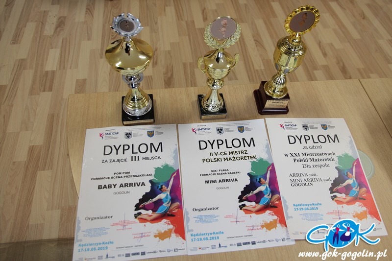W dniach 17 - 19 maja 2019 r. nasza grupa mażoretek ArriVa działająca przy Gminnym Ośrodku Kultury w Gogolinie brała udział w Mistrzostwach Polski Mażoretek, które odbywały się w Kędzierzynie Koźlu. Dziewczyny wspaniale reprezentowały Gminę Gogolin. Już w piątek Weronika Cisińska zdobyła srebrny medal i tytuł I wice mistrza Polski mażoretek w kategorii solo buława. W sobotę grupa Mini ArriVa przywiozła 2 brązowe medale i tytuł II wice Mistrza Polski w kategorii Mix formacje scena kadetki oraz w kategorii defilada 4x25m kadetki. W niedzielę natomiast po raz pierwszy w Mistrzostwach Polski udział brała najmłodsza grupa naszych mażoretek BaBy ArriVa, która zajęła zaszczytne III miejsce.