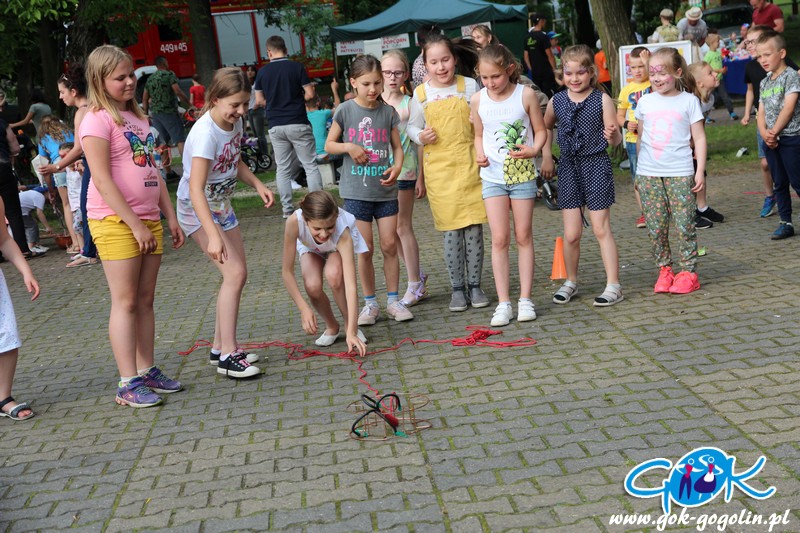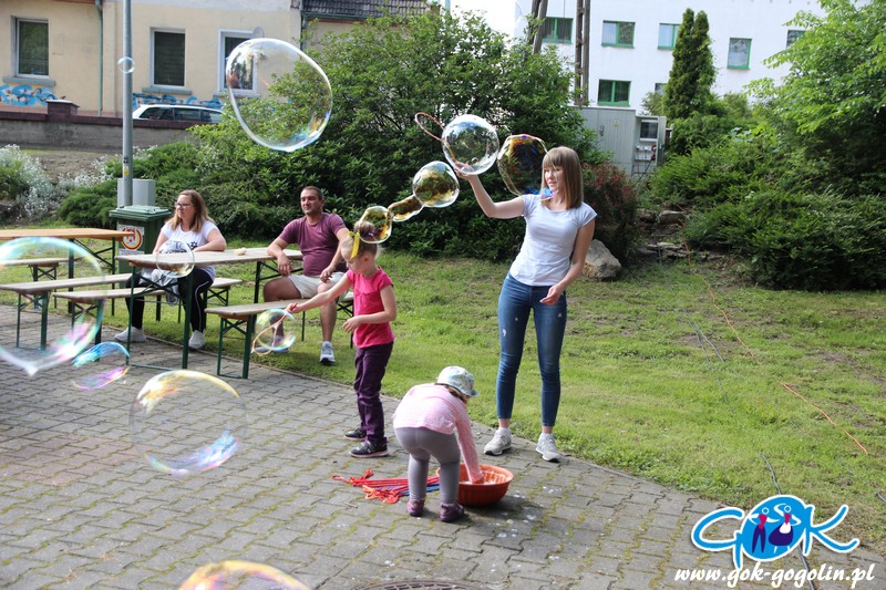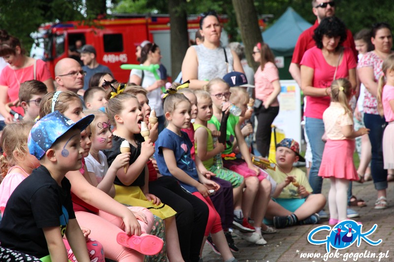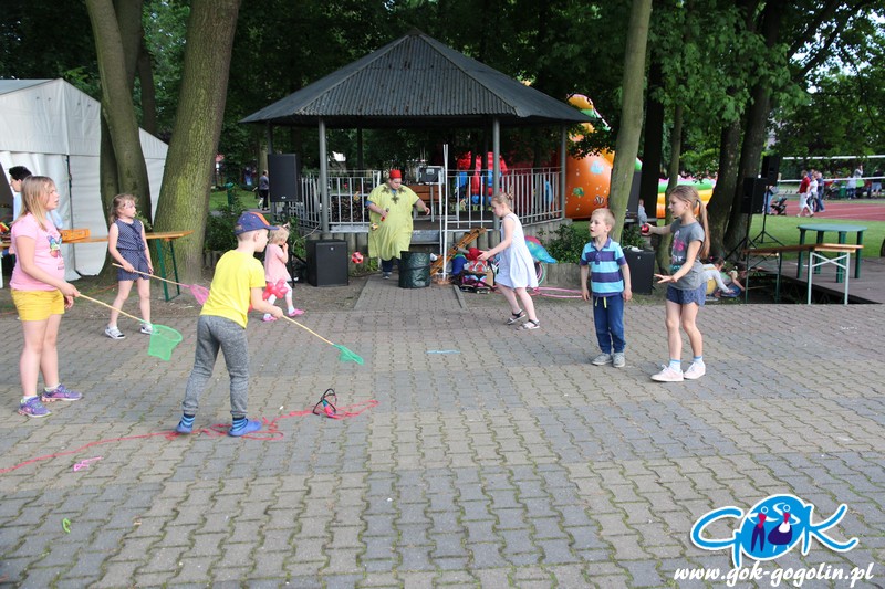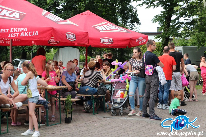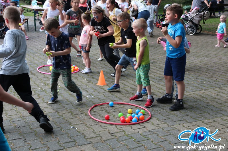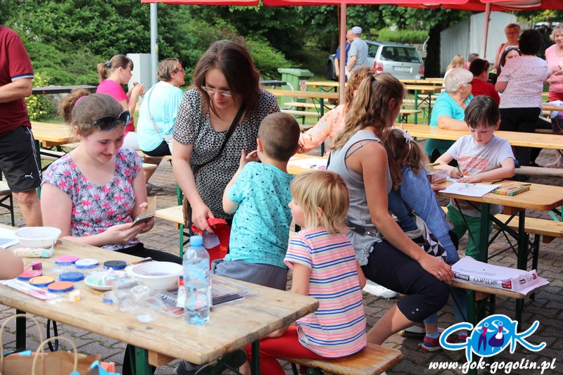 Przygotowano również kącik plastyczny przygotowany przez Świetlicę Środowiskową w Gogolinie i uśmiechnięte miasteczko, w którym pracownicy Gminnego Ośrodka Kultury w Gogolinie oraz Gminnej Biblioteki Publicznej w Gogolinie malowali buzie, oraz tworzyli wspólnie z dziećmi balonowe cudeńka oraz niezwykłe bańki mydlane. Nie zabrakło także zawodów sportowych.