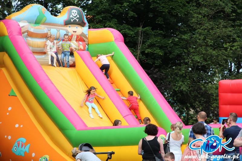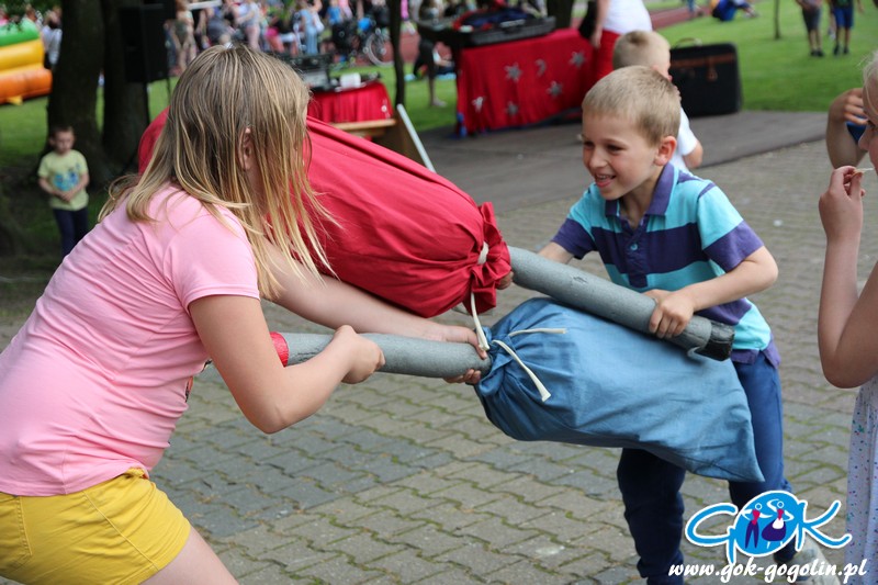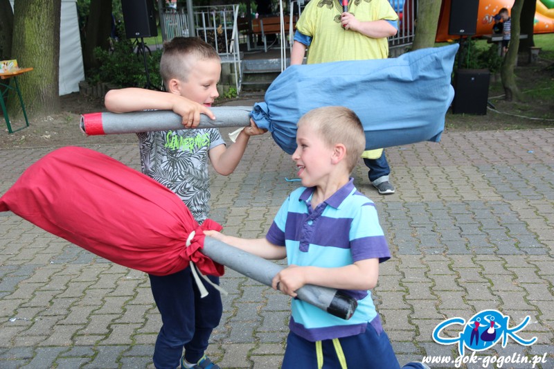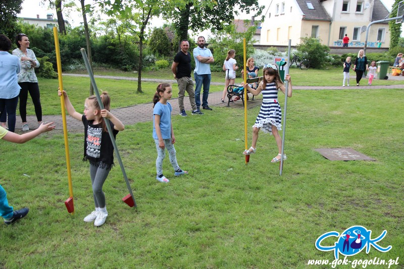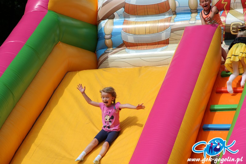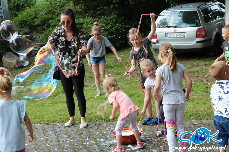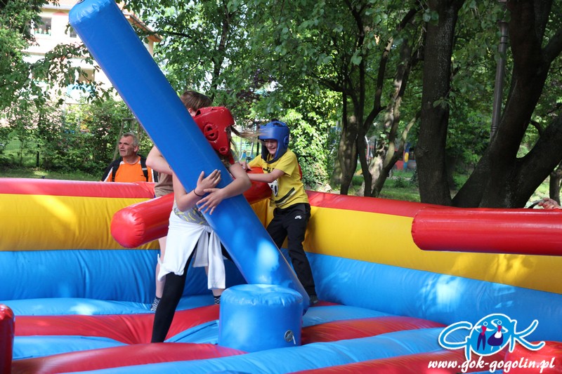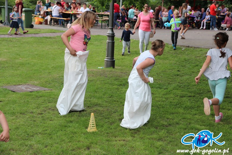 Przygotowano również kącik plastyczny przygotowany przez Świetlicę Środowiskową w Gogolinie i uśmiechnięte miasteczko, w którym pracownicy Gminnego Ośrodka Kultury w Gogolinie oraz Gminnej Biblioteki Publicznej w Gogolinie malowali buzie, oraz tworzyli wspólnie z dziećmi balonowe cudeńka oraz niezwykłe bańki mydlane. Nie zabrakło także zawodów sportowych.
