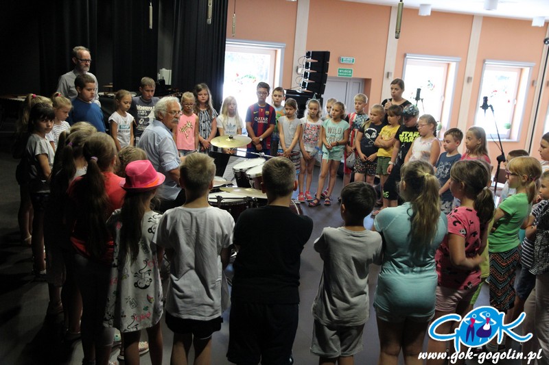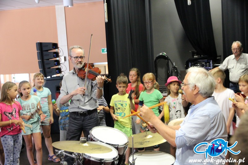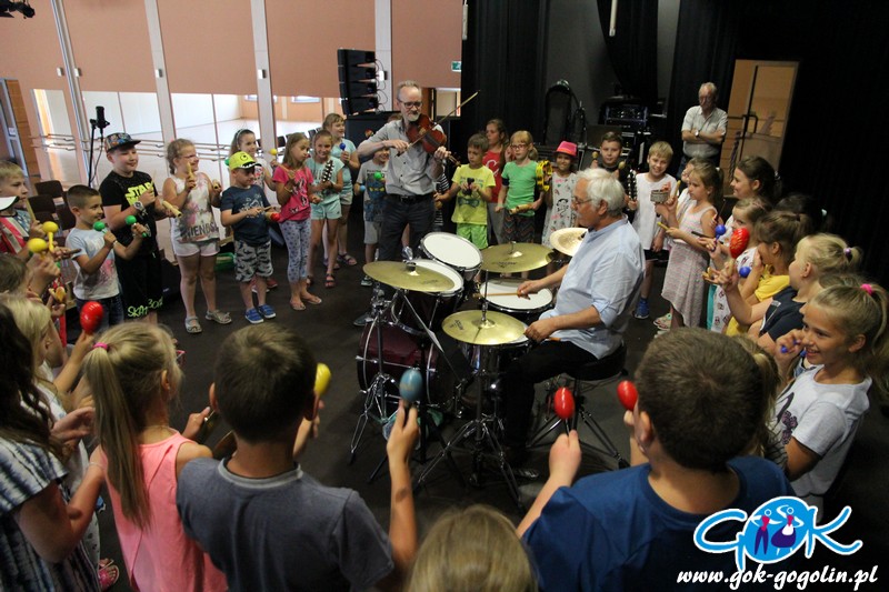 W poniedziałek 17 czerwca 2019 r. w Gminnym Centrum Kultury w Gogolinie odbyły się warsztaty muzyczne dla uczniów klas II i III Szkoły Podstawowej nr 2 w Gogolinie. Zajęcia poprowadzili skrzypek Andrzej Duchnik i perkusista Kazimierz Wolski.