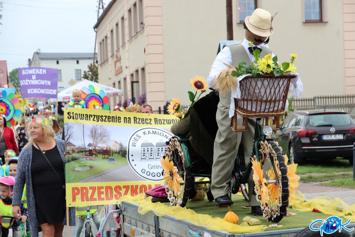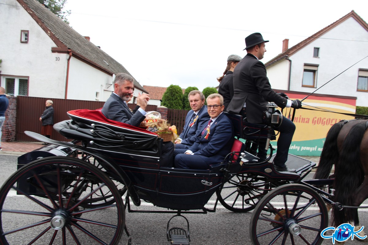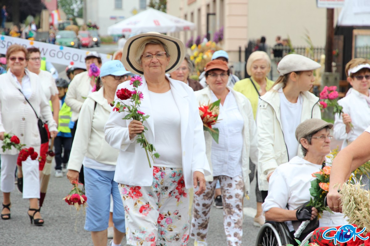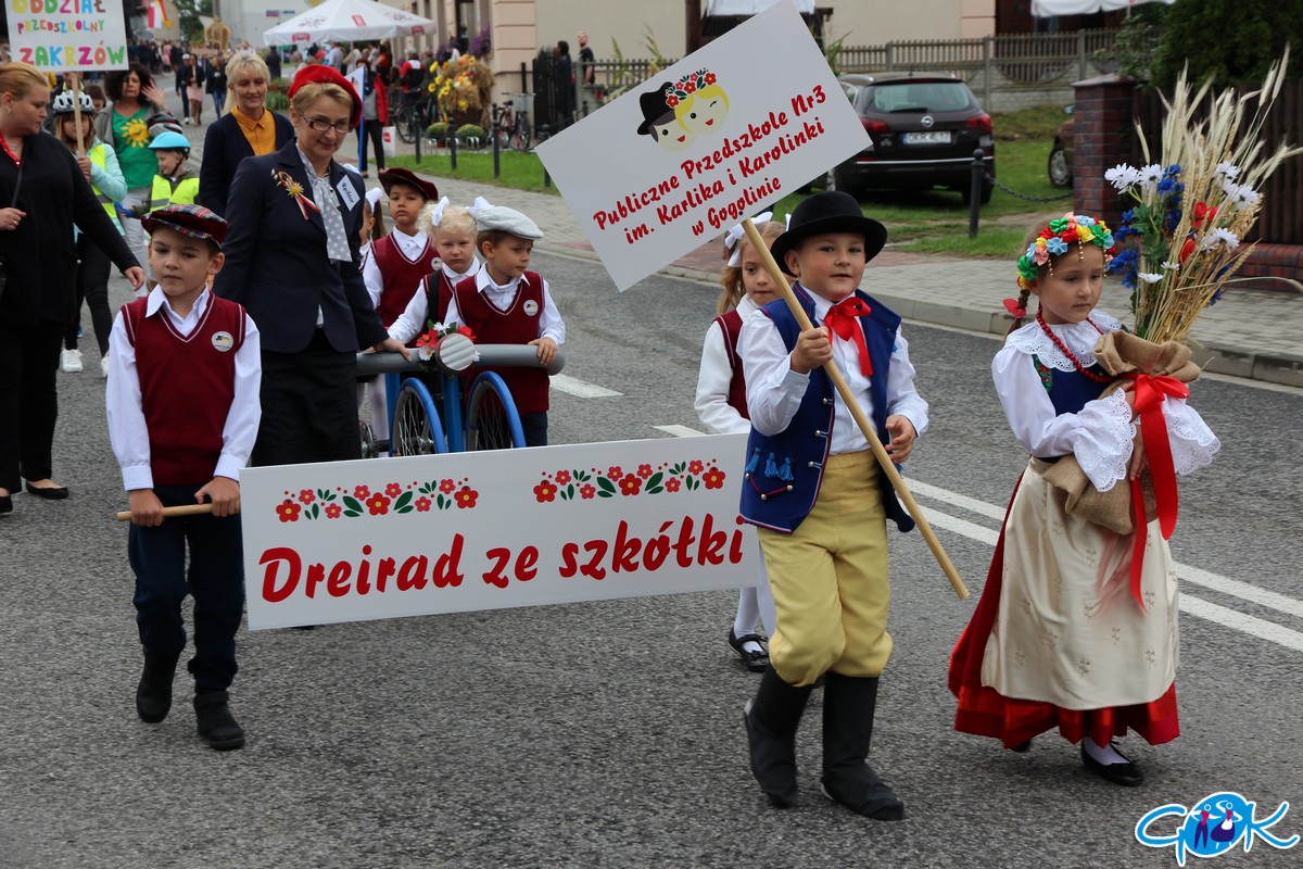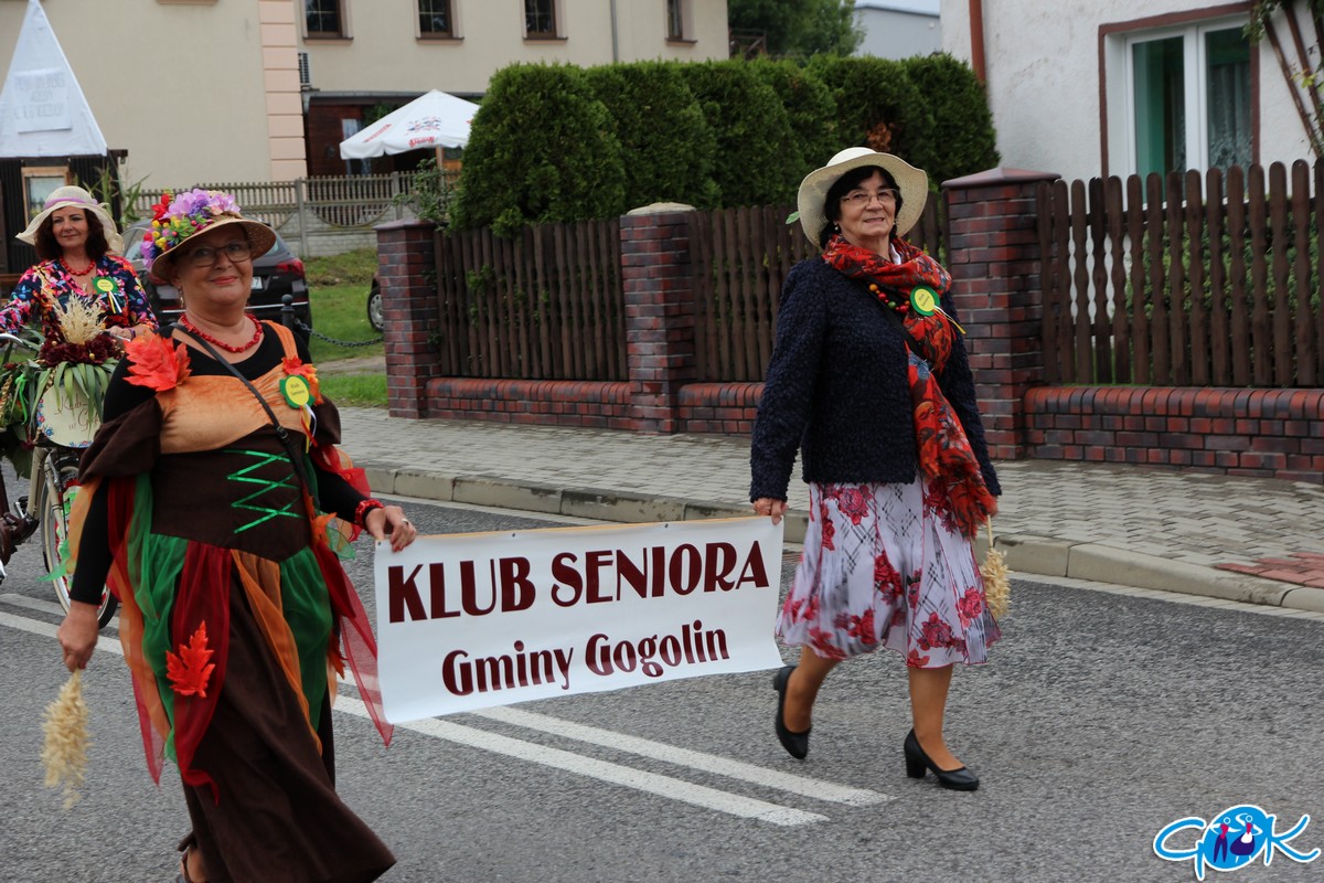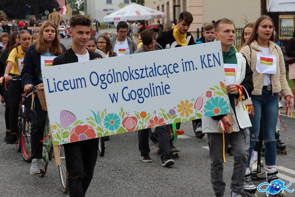 W godzinach popołudniowych pod Izbą Tradycji uformował się barwny korowód, który przemaszerował przez centrum miejscowości do przypałacowego parku, gdzie odbyły się oficjalne uroczystości. Korowód prowadziła Miejska Młodzieżowa Orkiestra Dęta z Gogolina oraz Mażoretki ArriVa funkcjonujące przy Gminnym Ośrodku Kultury w Gogolinie. Tradycyjnie można było podziwiać pięknie przyozdobione przyczepy, wozy z humorystycznymi scenkami rodzajowymi, bogato zdobione – misternie wykonane korony oraz wieńce dożynkowe, czy płody rolne lokalnych rolników, ogrodników i działkowców. W przemarszu wzięli udział również przedstawiciele sołectw i dzielnic, gminnych jednostek organizacyjnych, placówek oświatowych, stowarzyszeń i lokalnych grup działania, oraz uczestnicy konkursu „Rowerem w dożynkowym korowodzie”.
