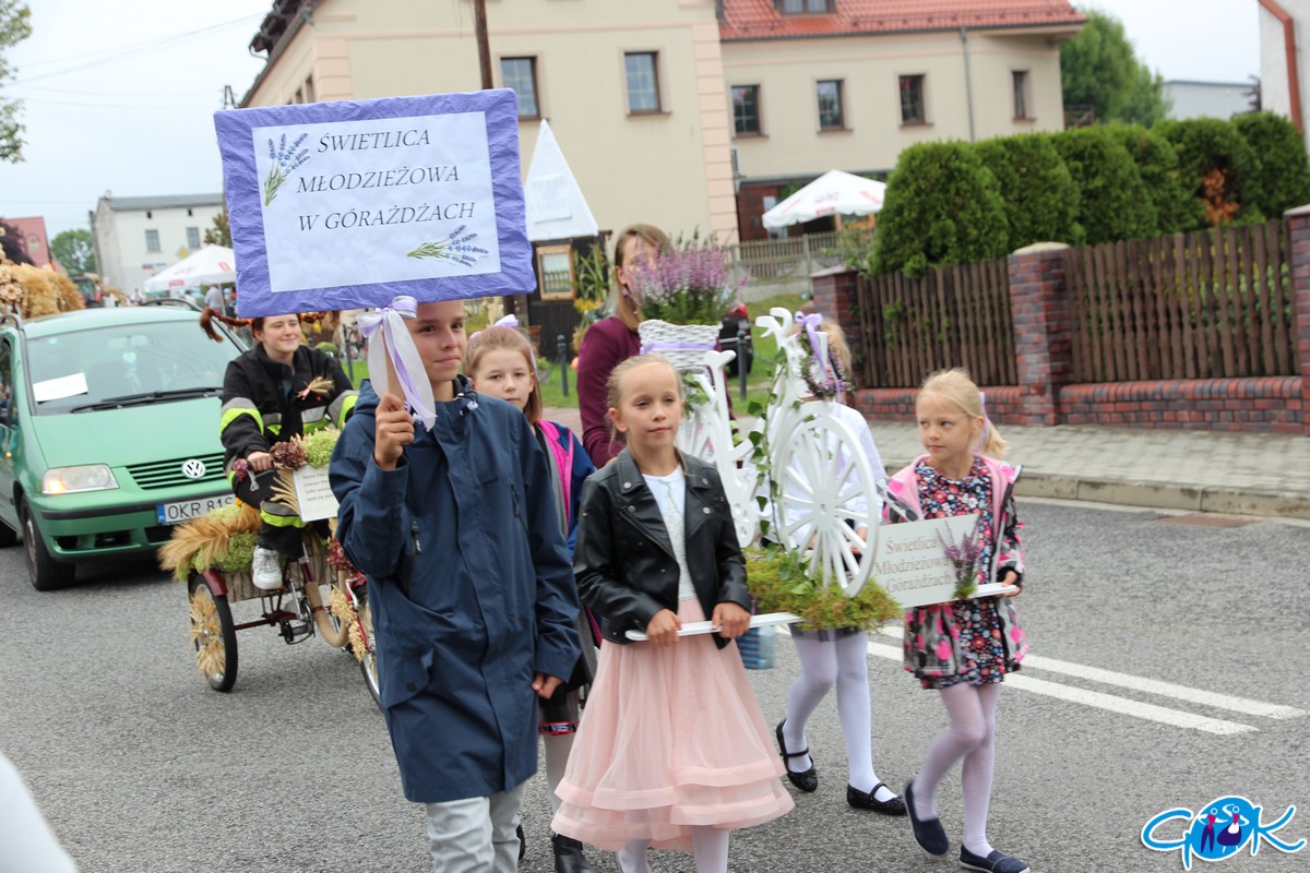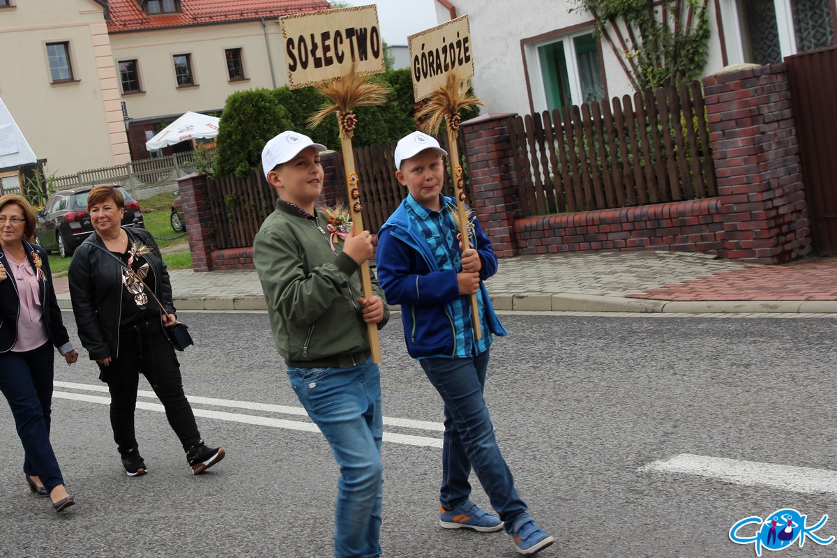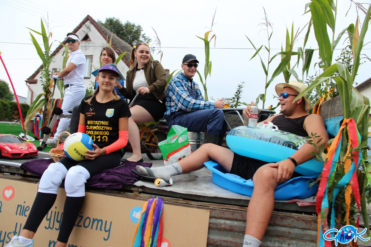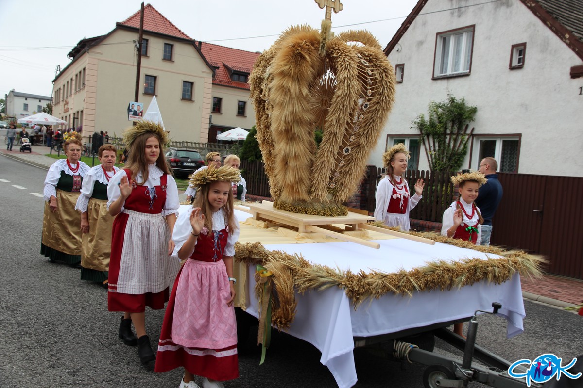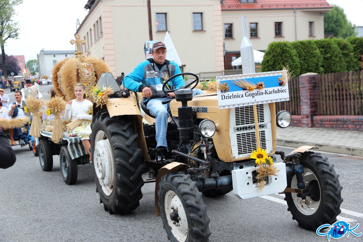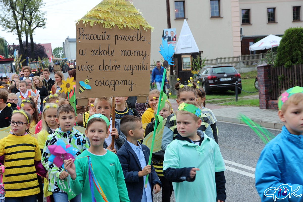 W godzinach popołudniowych pod Izbą Tradycji uformował się barwny korowód, który przemaszerował przez centrum miejscowości do przypałacowego parku, gdzie odbyły się oficjalne uroczystości. Korowód prowadziła Miejska Młodzieżowa Orkiestra Dęta z Gogolina oraz Mażoretki ArriVa funkcjonujące przy Gminnym Ośrodku Kultury w Gogolinie. Tradycyjnie można było podziwiać pięknie przyozdobione przyczepy, wozy z humorystycznymi scenkami rodzajowymi, bogato zdobione – misternie wykonane korony oraz wieńce dożynkowe, czy płody rolne lokalnych rolników, ogrodników i działkowców. W przemarszu wzięli udział również przedstawiciele sołectw i dzielnic, gminnych jednostek organizacyjnych, placówek oświatowych, stowarzyszeń i lokalnych grup działania, oraz uczestnicy konkursu „Rowerem w dożynkowym korowodzie”.