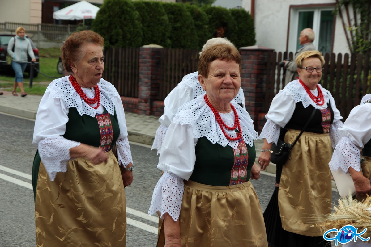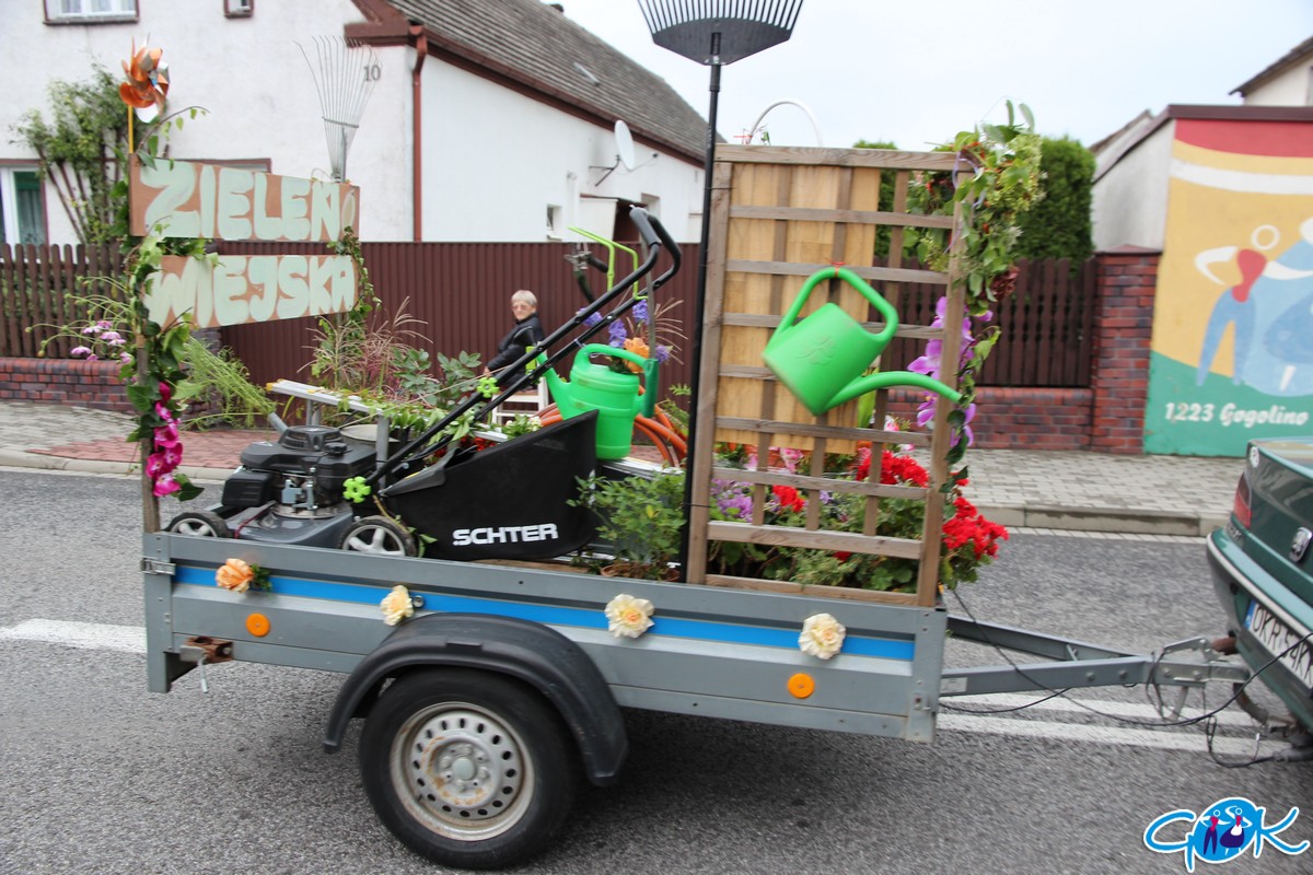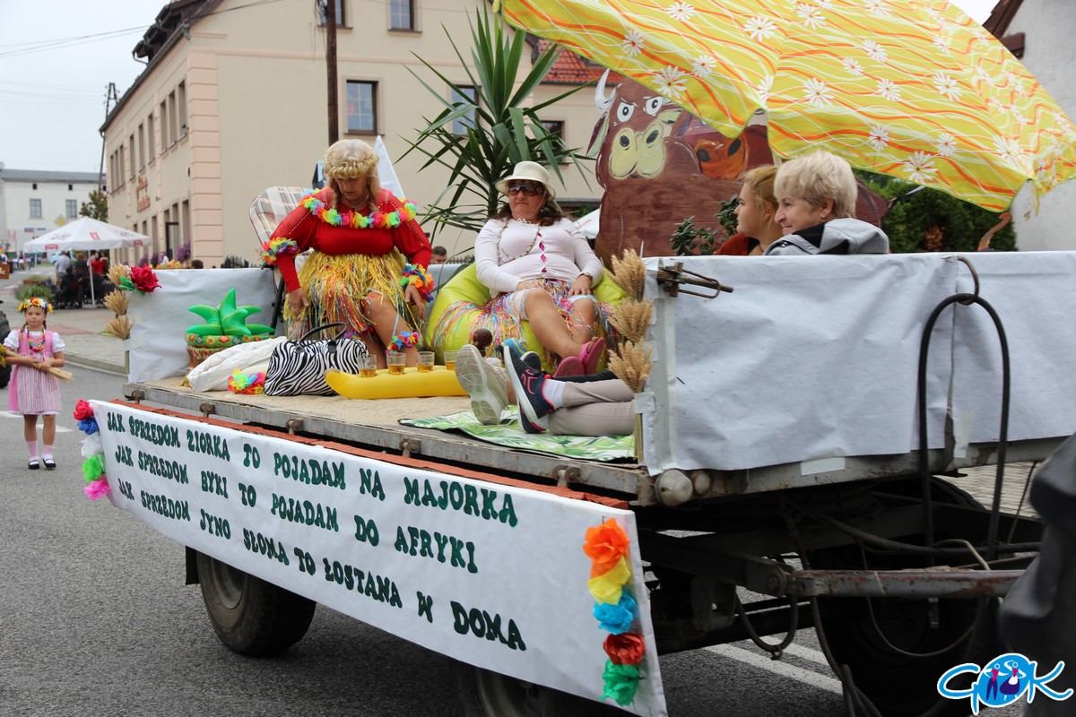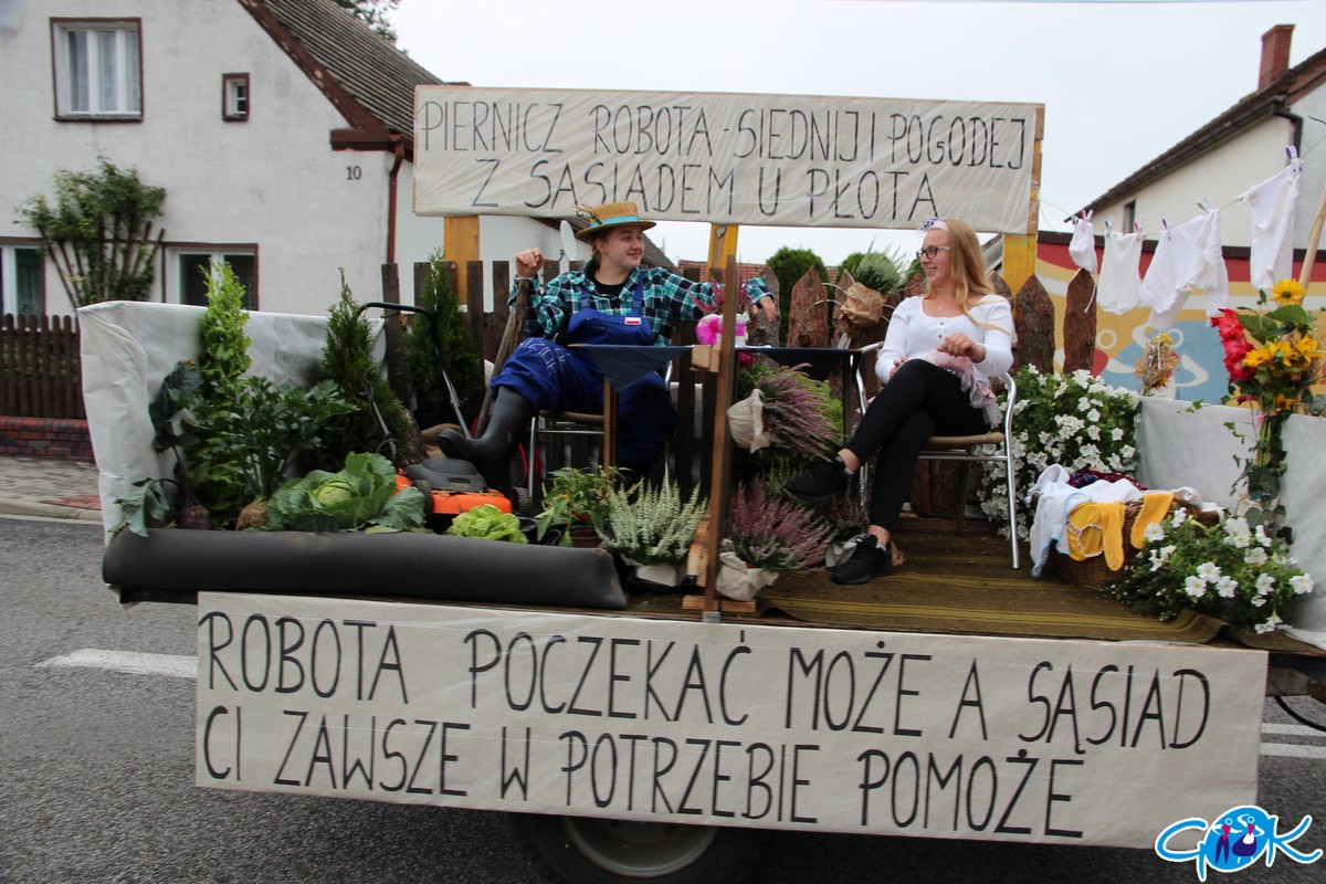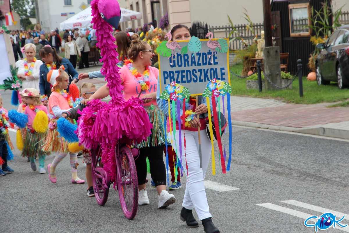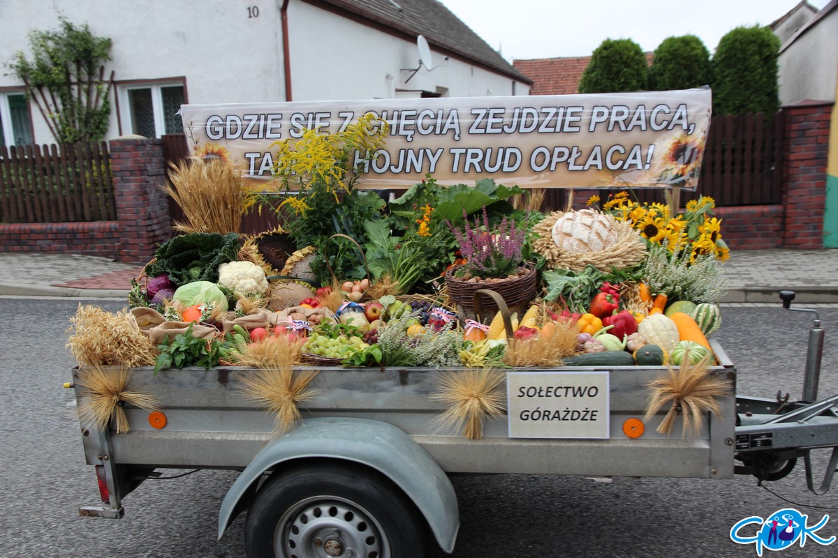 W godzinach popołudniowych pod Izbą Tradycji uformował się barwny korowód, który przemaszerował przez centrum miejscowości do przypałacowego parku, gdzie odbyły się oficjalne uroczystości. Korowód prowadziła Miejska Młodzieżowa Orkiestra Dęta z Gogolina oraz Mażoretki ArriVa funkcjonujące przy Gminnym Ośrodku Kultury w Gogolinie. Tradycyjnie można było podziwiać pięknie przyozdobione przyczepy, wozy z humorystycznymi scenkami rodzajowymi, bogato zdobione – misternie wykonane korony oraz wieńce dożynkowe, czy płody rolne lokalnych rolników, ogrodników i działkowców. W przemarszu wzięli udział również przedstawiciele sołectw i dzielnic, gminnych jednostek organizacyjnych, placówek oświatowych, stowarzyszeń i lokalnych grup działania, oraz uczestnicy konkursu „Rowerem w dożynkowym korowodzie”.