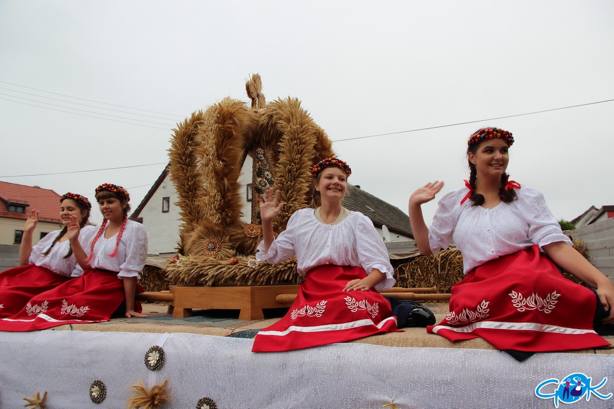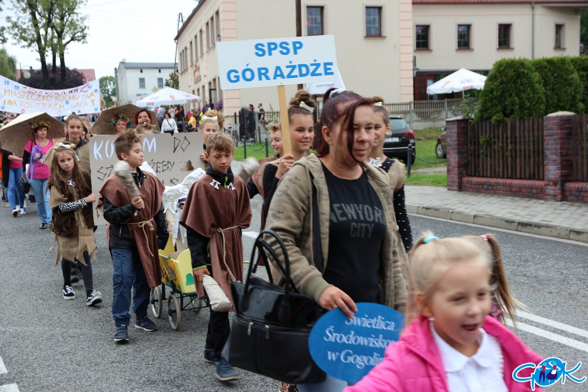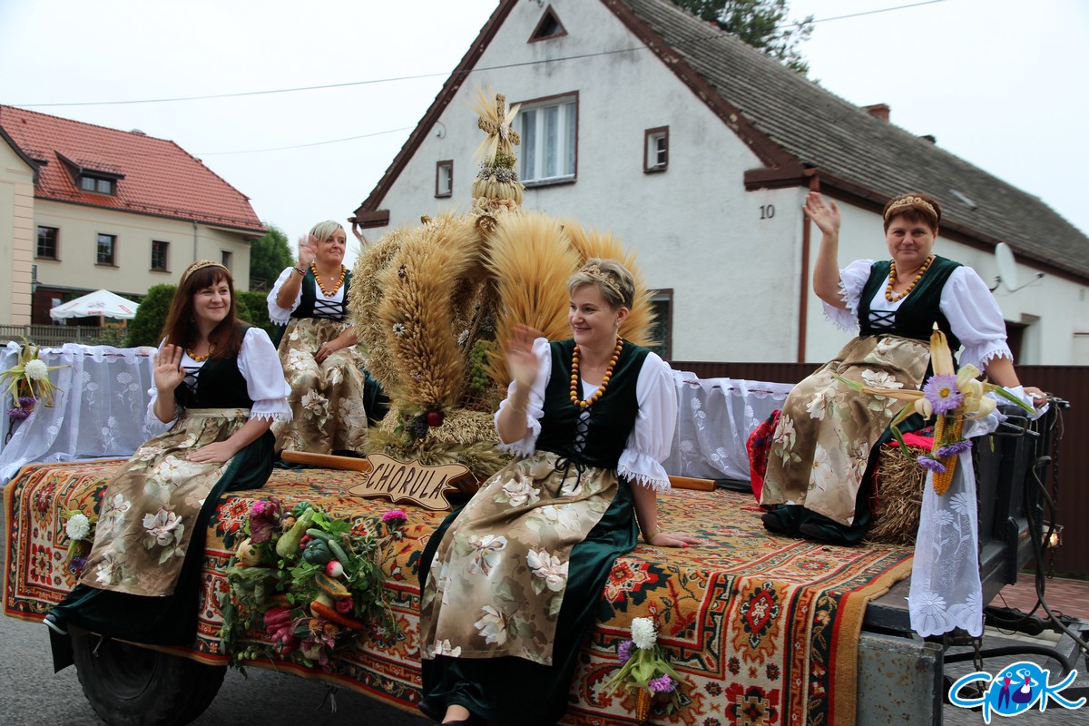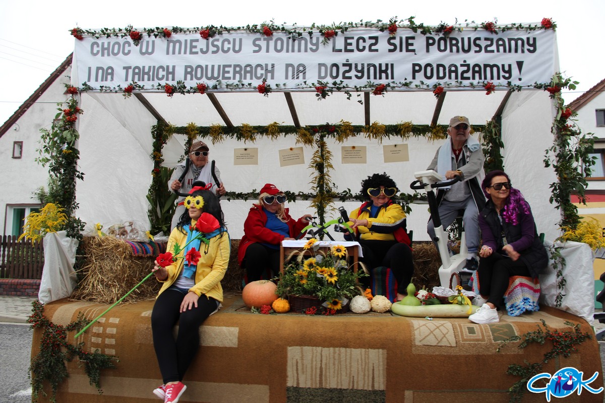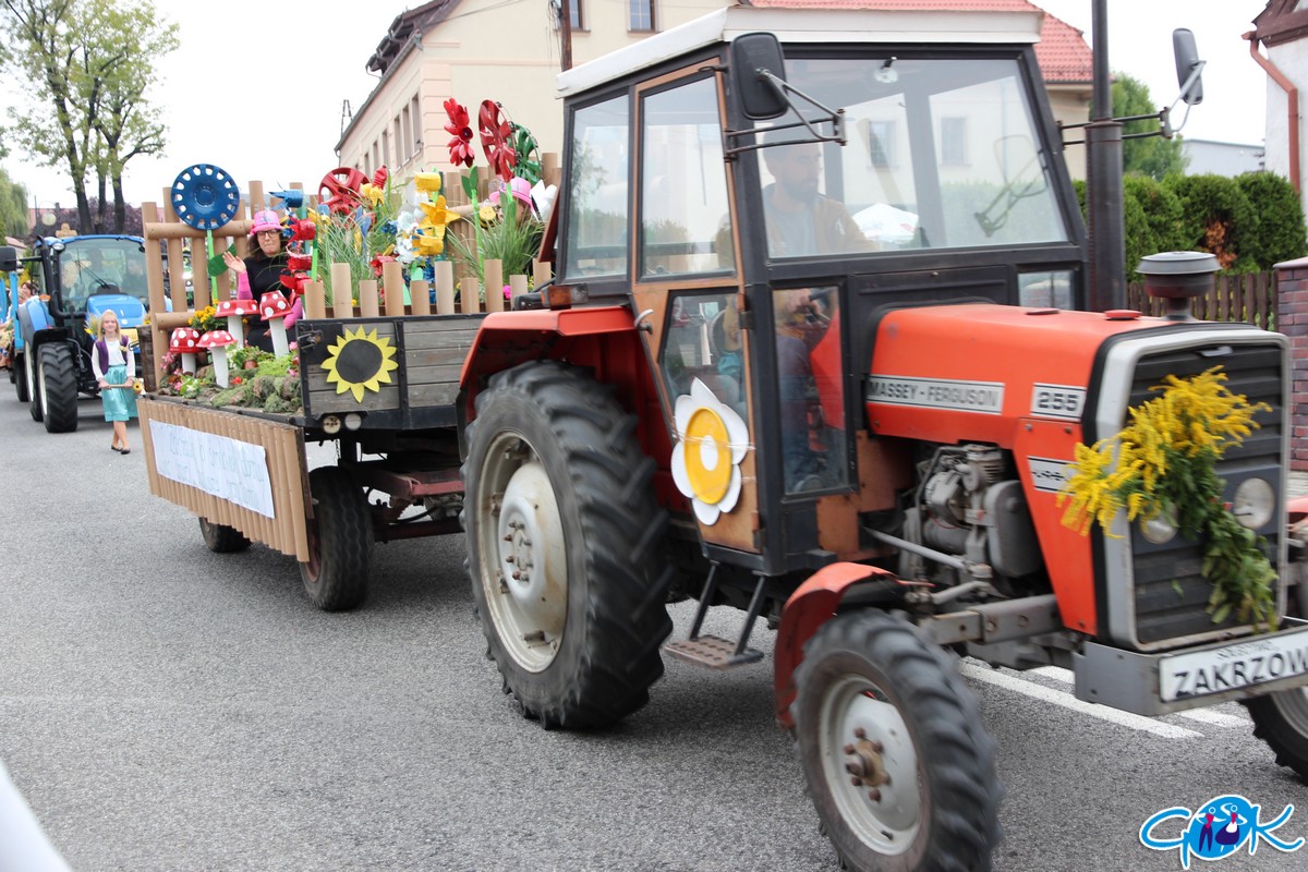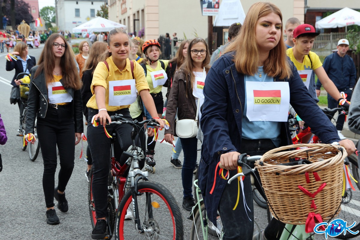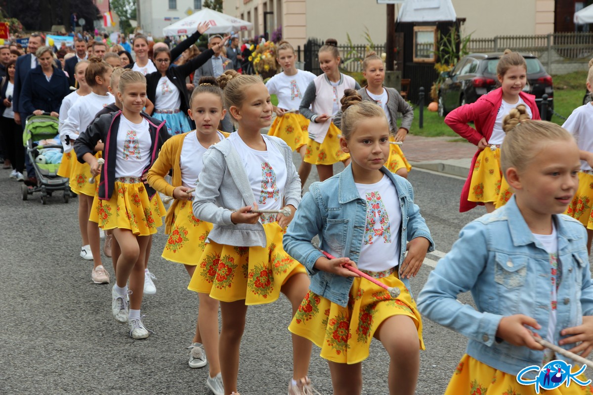 W godzinach popołudniowych pod Izbą Tradycji uformował się barwny korowód, który przemaszerował przez centrum miejscowości do przypałacowego parku, gdzie odbyły się oficjalne uroczystości. Korowód prowadziła Miejska Młodzieżowa Orkiestra Dęta z Gogolina oraz Mażoretki ArriVa funkcjonujące przy Gminnym Ośrodku Kultury w Gogolinie. Tradycyjnie można było podziwiać pięknie przyozdobione przyczepy, wozy z humorystycznymi scenkami rodzajowymi, bogato zdobione – misternie wykonane korony oraz wieńce dożynkowe, czy płody rolne lokalnych rolników, ogrodników i działkowców. W przemarszu wzięli udział również przedstawiciele sołectw i dzielnic, gminnych jednostek organizacyjnych, placówek oświatowych, stowarzyszeń i lokalnych grup działania, oraz uczestnicy konkursu „Rowerem w dożynkowym korowodzie”.