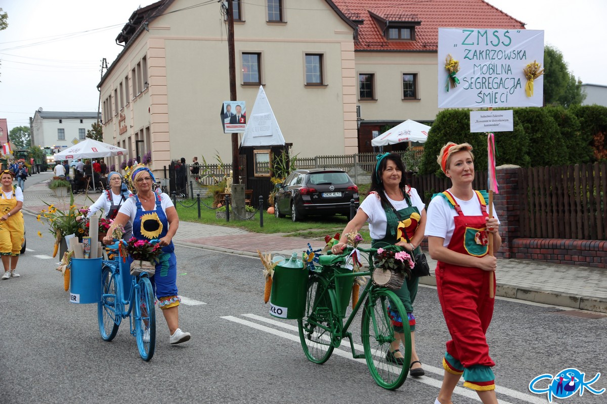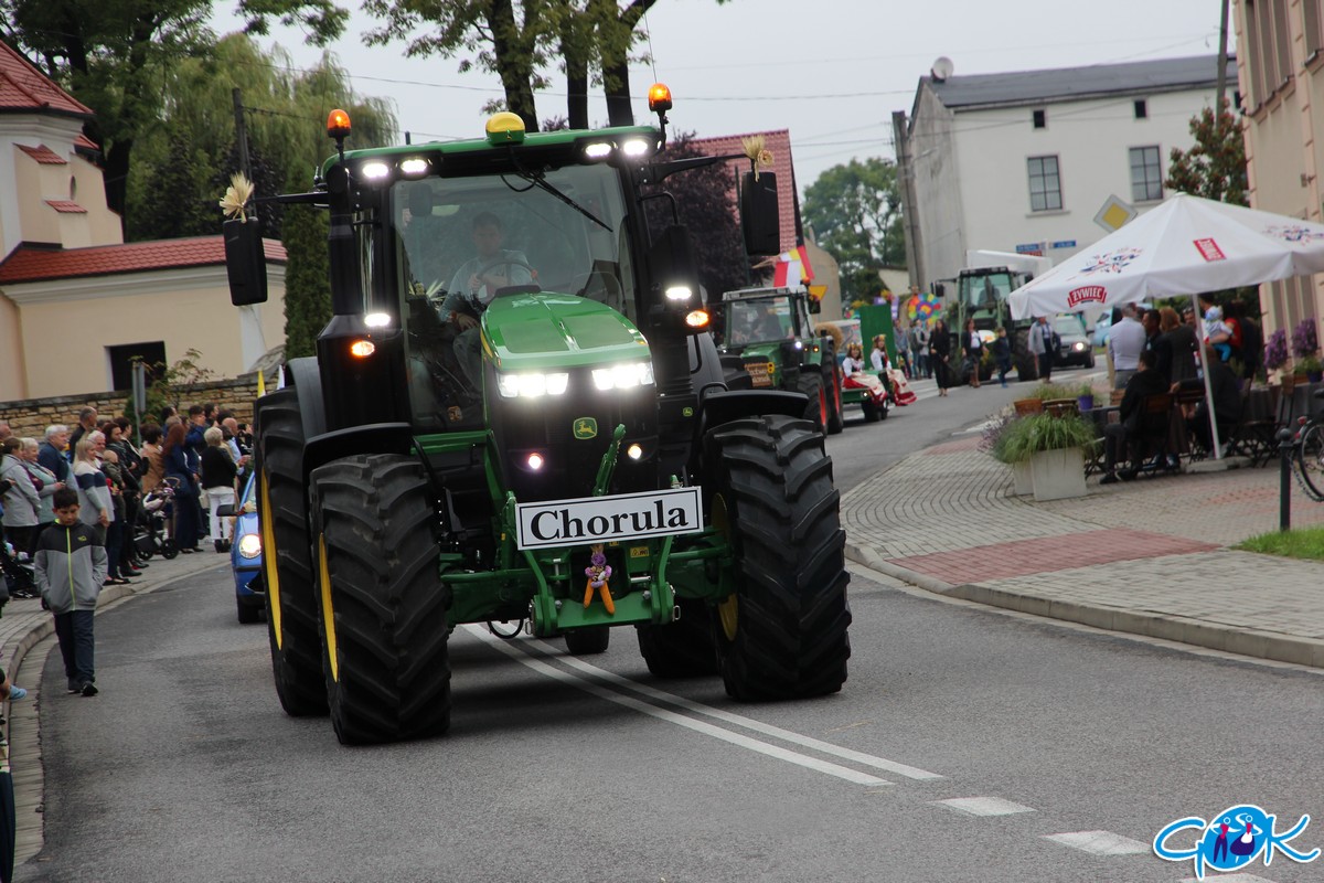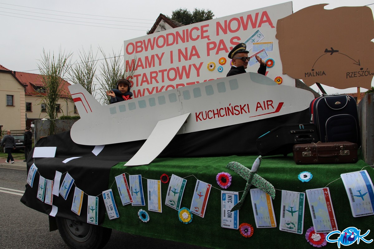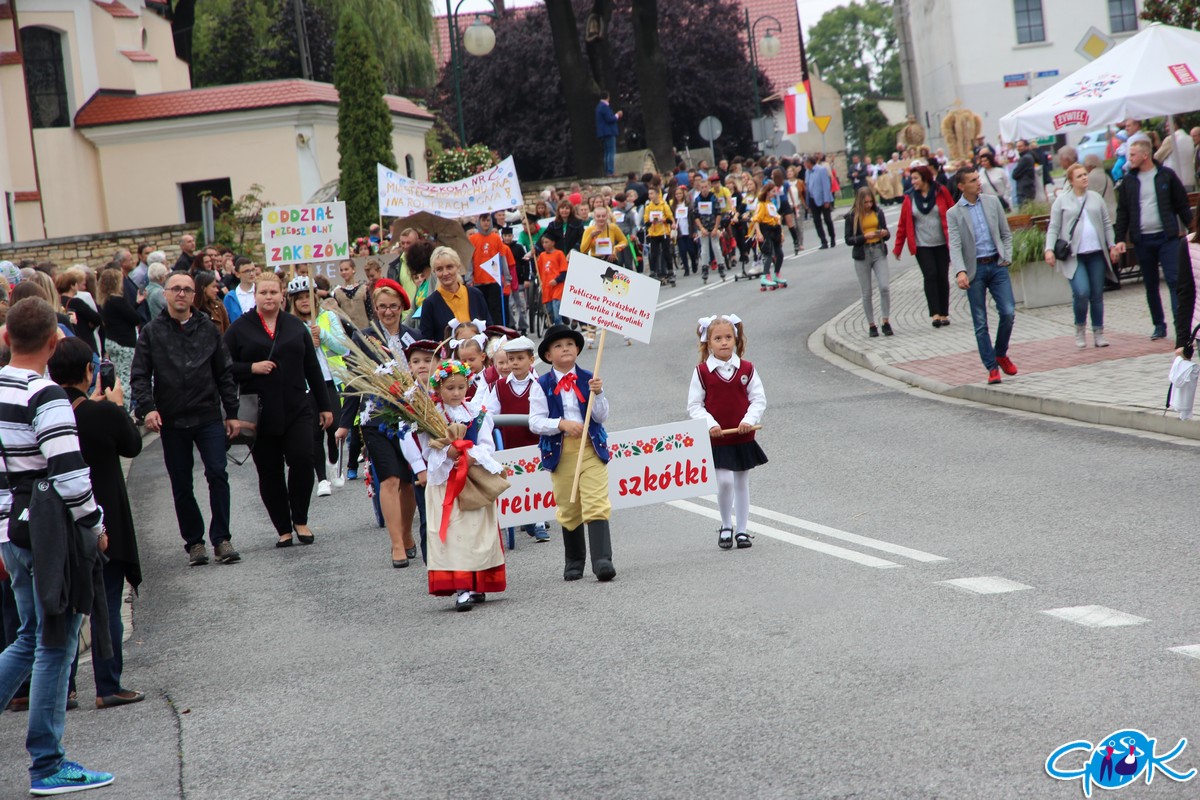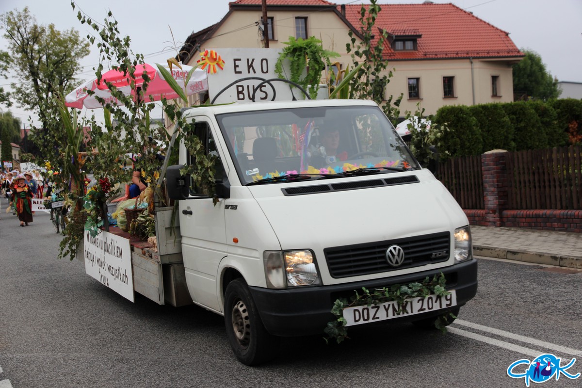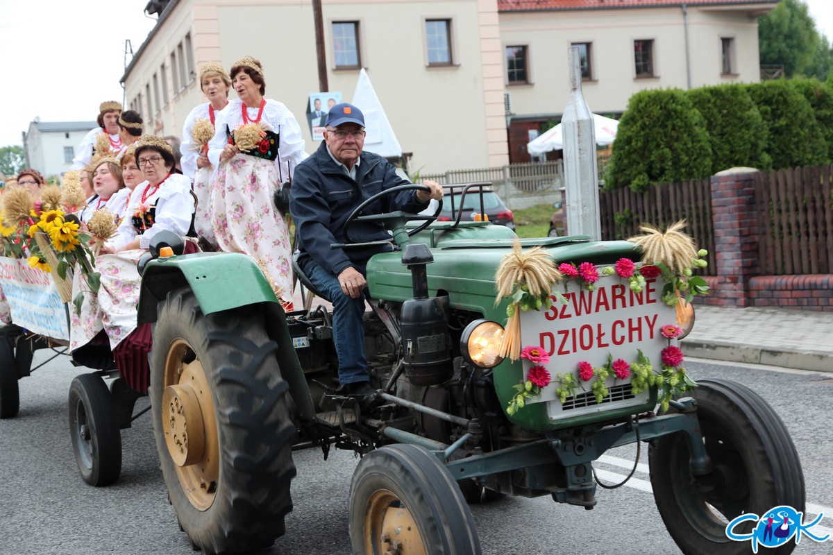 W godzinach popołudniowych pod Izbą Tradycji uformował się barwny korowód, który przemaszerował przez centrum miejscowości do przypałacowego parku, gdzie odbyły się oficjalne uroczystości. Korowód prowadziła Miejska Młodzieżowa Orkiestra Dęta z Gogolina oraz Mażoretki ArriVa funkcjonujące przy Gminnym Ośrodku Kultury w Gogolinie. Tradycyjnie można było podziwiać pięknie przyozdobione przyczepy, wozy z humorystycznymi scenkami rodzajowymi, bogato zdobione – misternie wykonane korony oraz wieńce dożynkowe, czy płody rolne lokalnych rolników, ogrodników i działkowców. W przemarszu wzięli udział również przedstawiciele sołectw i dzielnic, gminnych jednostek organizacyjnych, placówek oświatowych, stowarzyszeń i lokalnych grup działania, oraz uczestnicy konkursu „Rowerem w dożynkowym korowodzie”.