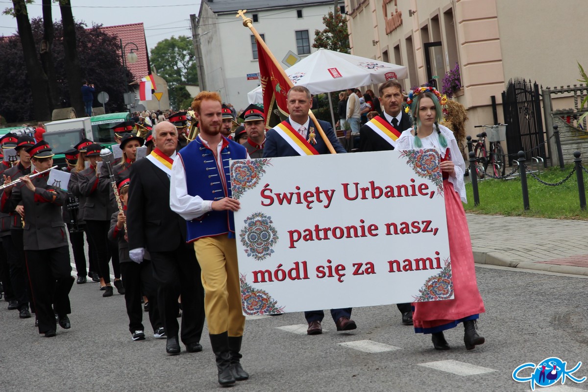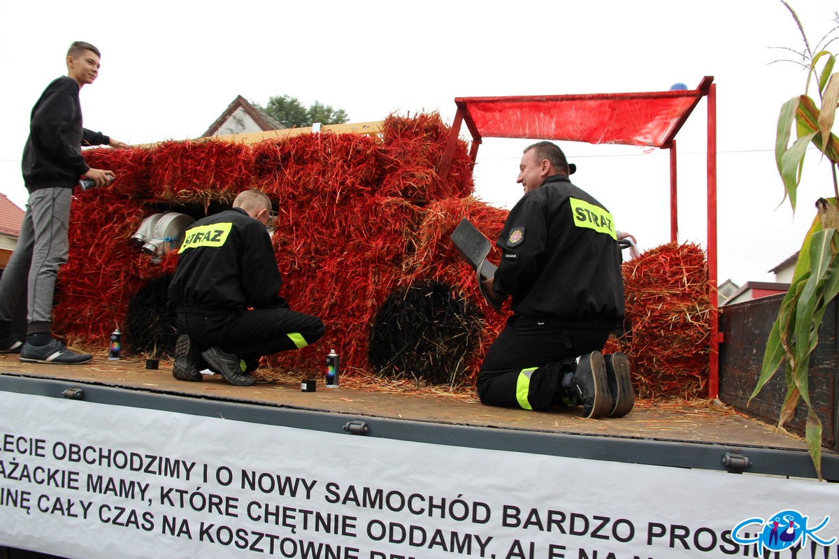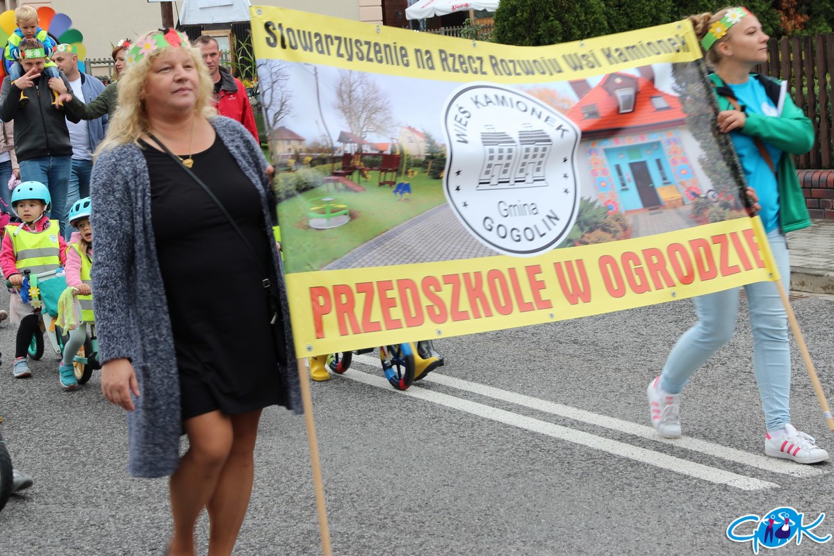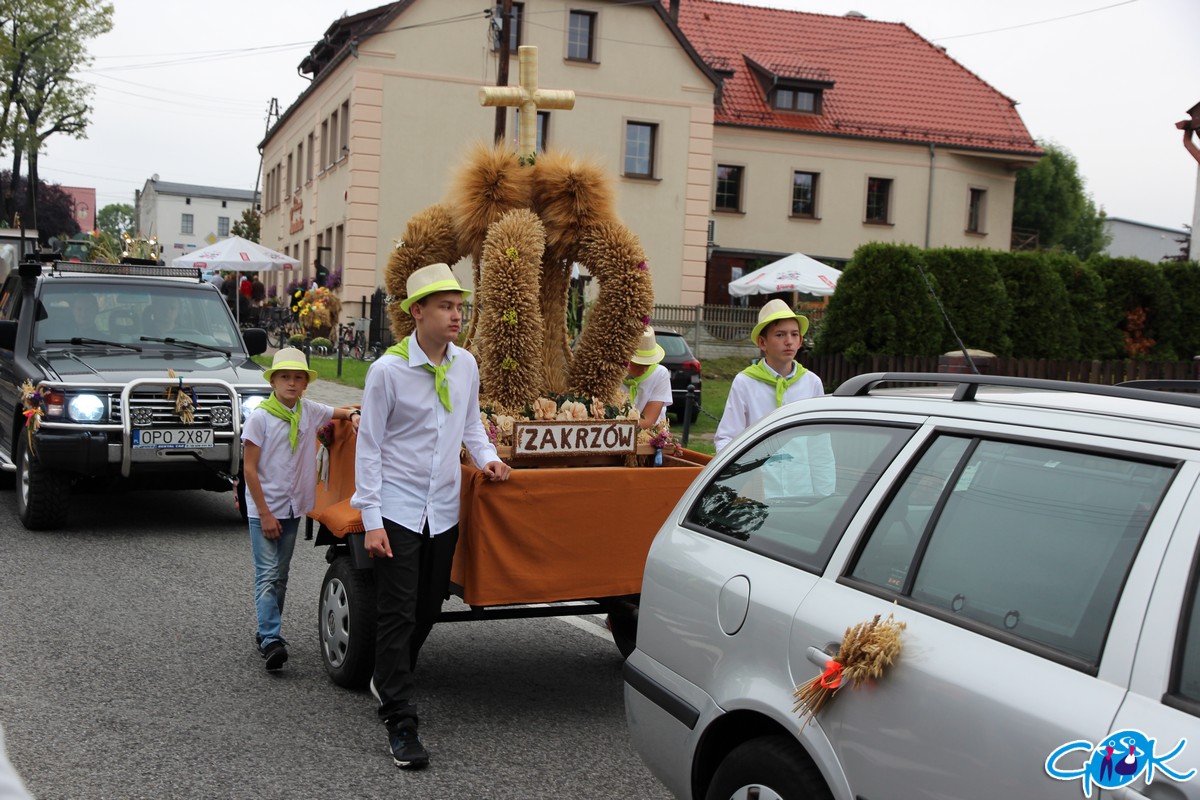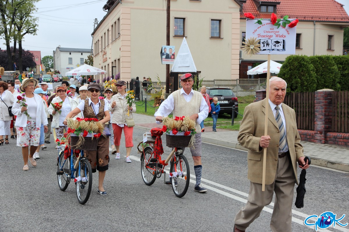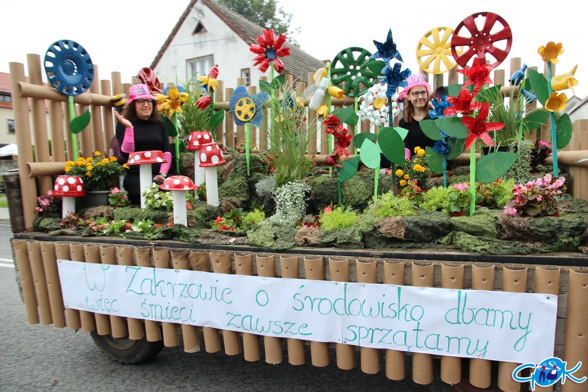 W godzinach popołudniowych pod Izbą Tradycji uformował się barwny korowód, który przemaszerował przez centrum miejscowości do przypałacowego parku, gdzie odbyły się oficjalne uroczystości. Korowód prowadziła Miejska Młodzieżowa Orkiestra Dęta z Gogolina oraz Mażoretki ArriVa funkcjonujące przy Gminnym Ośrodku Kultury w Gogolinie. Tradycyjnie można było podziwiać pięknie przyozdobione przyczepy, wozy z humorystycznymi scenkami rodzajowymi, bogato zdobione – misternie wykonane korony oraz wieńce dożynkowe, czy płody rolne lokalnych rolników, ogrodników i działkowców. W przemarszu wzięli udział również przedstawiciele sołectw i dzielnic, gminnych jednostek organizacyjnych, placówek oświatowych, stowarzyszeń i lokalnych grup działania, oraz uczestnicy konkursu „Rowerem w dożynkowym korowodzie”.