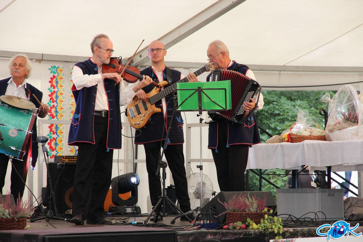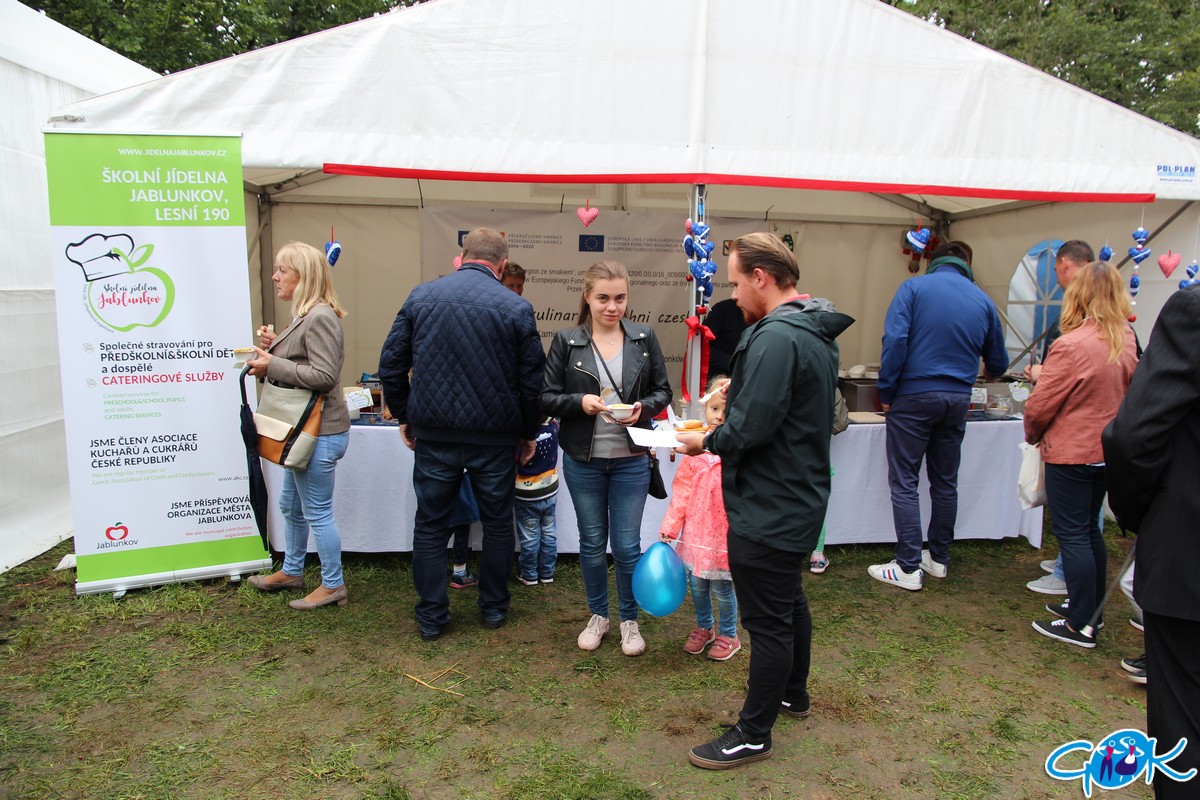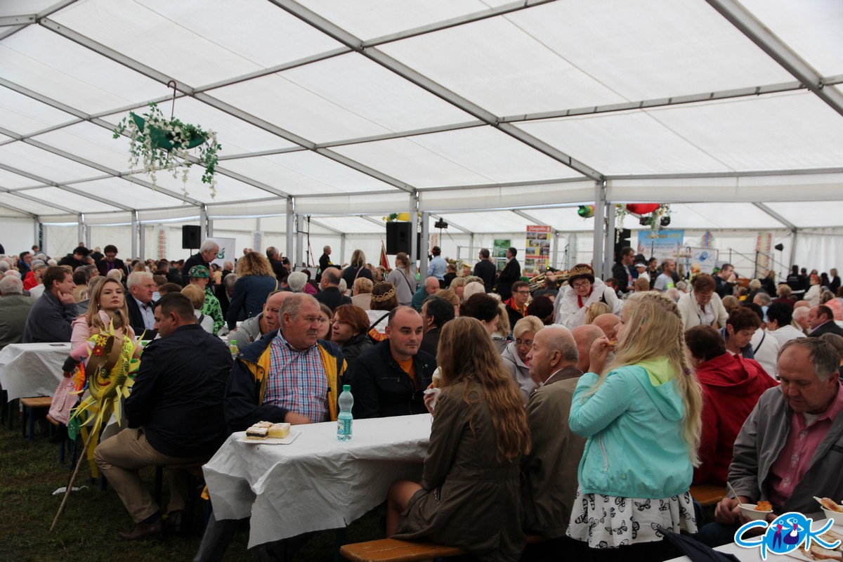 W ramach gogolińsko – jabłonkowskiego projektu transgranicznego „Euroregion ze smakiem”, w trakcie „Żniwnioka” czescy partnerzy zaprezentowali bogactwo swojej regionalnej kuchni. Licznie zgromadzenia goście mogli degustować m.in. wieprzowy gulasz z knedliczkami, polędwicę wołową z kopytkami oraz wołowskie ciasteczka z twarogiem. Przygotowanych zostało tysiąc porcji, które rozeszły się w mgnieniu oka! Oczywiście, nie zabrakło też naszych śląskich specjałów, czyli świeżego chleba ze smalcem i kiszonymi ogórkiem, który czekał na każdym biesiadnym stole. Zakupić można było także świeży kołacz, a na dzieci tradycyjnie czekały stoiska z watą cukrową i innymi słodkimi przysmakami.