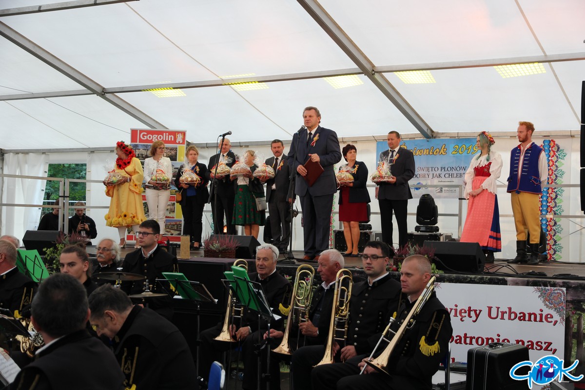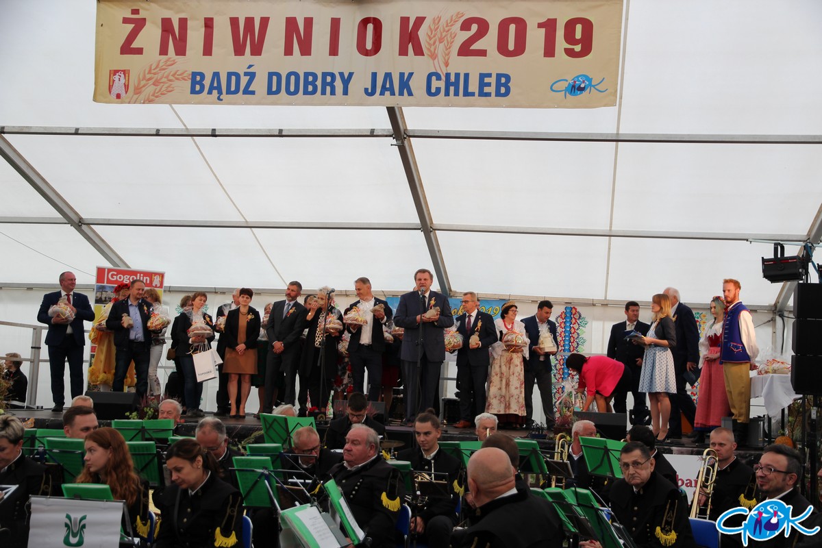 Oficjalna część uroczystości odbyła się w parku przypałacowym w Kamieniu Śląskim. Dożynkowy bochen chleba przekazali na ręce Burmistrza Gogolina Joachima Wojtali starostowie dożynkowi: Lidia Blaut i Waldemar Wloka. Okazałe i pięknie ozdobione chleby otrzymali również sołtysi oraz przewodniczący zarządów dzielnic, a symboliczny worek zboża: współpracujący z gminą Gogolin samorządowcy, przedstawiciele gminnych rad oraz włodarze miast i min partnerskich. Przy dźwiękach uroczystej pieśni „Boże z Twoich rąk żyjemy”, wykonanej przez Orkiestrę Dętą „Górażdże Cement” S.A., uroczyście rozpoczęto oficjalne obchody „Żniwnioka 2019”. Jak zawsze, uroczystościom towarzyszył ciekawy i bogaty program artystyczny. Gwiazdą wieczoru była słowacka grupa Balkansambel. Świętowanie dorocznego „Żniwnioka” zakończyła wieczorna zabawa taneczna z zespołem muzycznym DIAMANT.