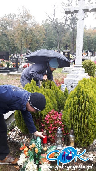 Przy grobie Juliusza Rogera zapaliliśmy znicz i zaśpiewaliśmy, również "Poszła Karolinka" .