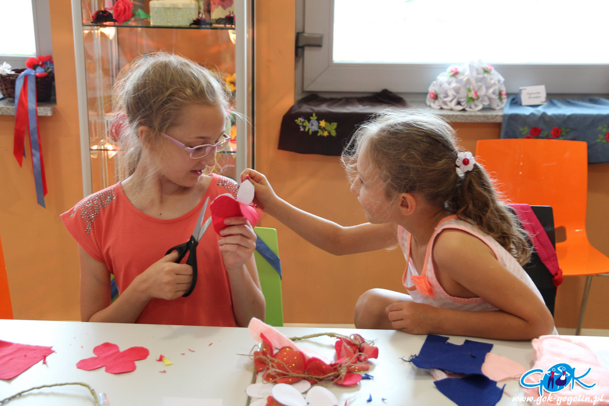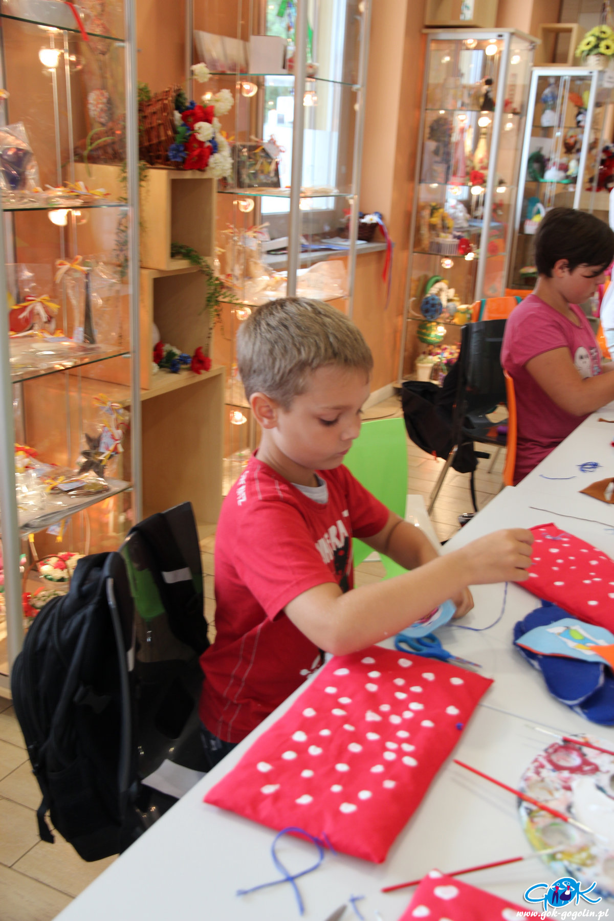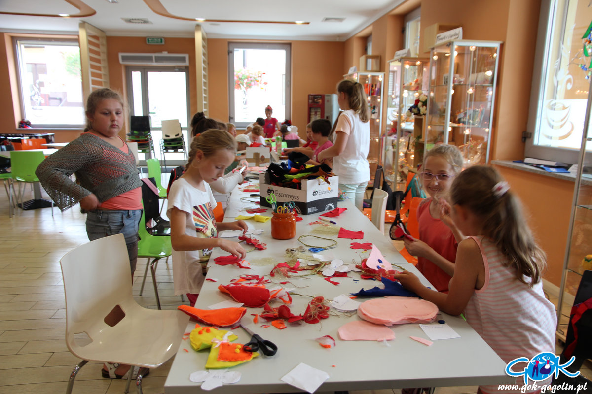 Dnia 13.07.2017r. w Gminnym Ośrodku Kultury w Nutka Cafe odbyły się zajęcia z szycia. Dzieci miały za zadanie uszyć ptaki, które będą ozdobą w ich domowych oknach. Ptaki zostały uszyte z sztywnego filcu wypełnione i przyklejone na jednej długiej tasiemce lub sznurku.