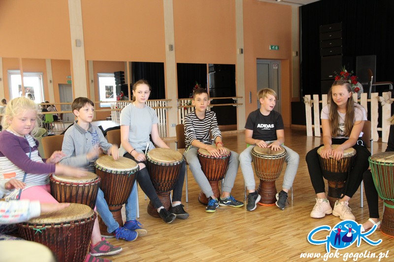 Jedną z atrakcji tego tygodnia była nauka gry na bębnach. Zajęcia przeprowadziły Martyna Kluge oraz Agata Góra, uczestniczki warsztatów bębniarskich w Gminnym Ośrodku Kultury w Gogolinie.