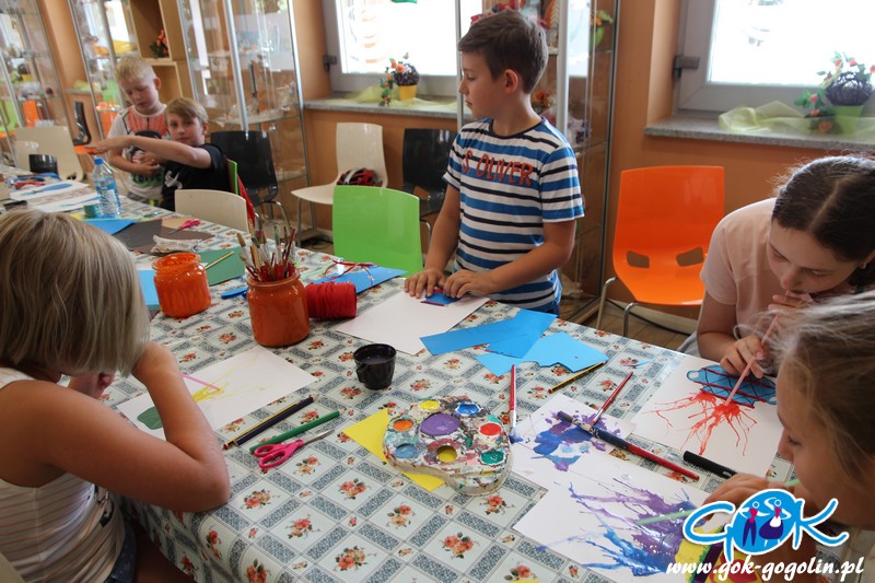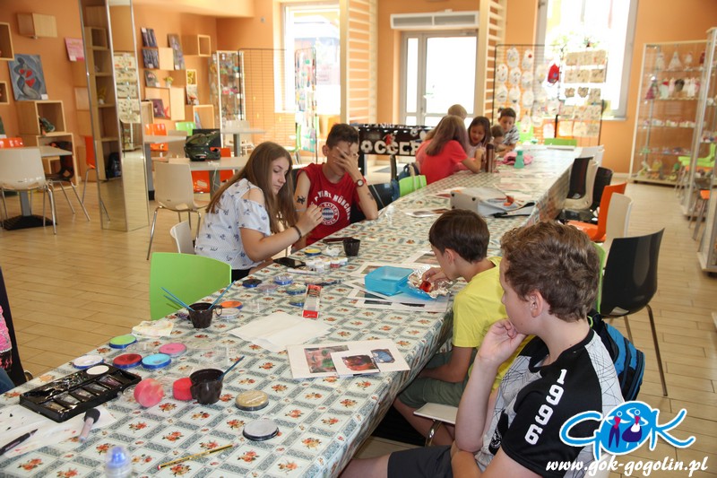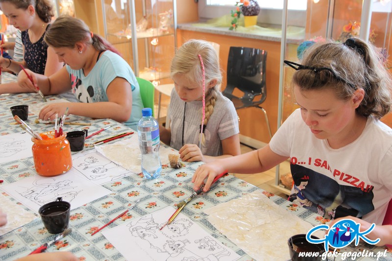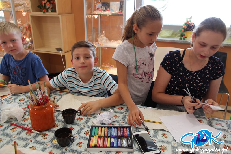 W poniedziałek 22.07.2019 r. uczestnicy zajęć wzięli udział w warsztatach malowania herbatą, w czasie których poznali czym jest malarstwo naskalne, jaskiniowe. Do wykonania pracy wykorzystano suche pastele oraz węgiel rysunkowy.