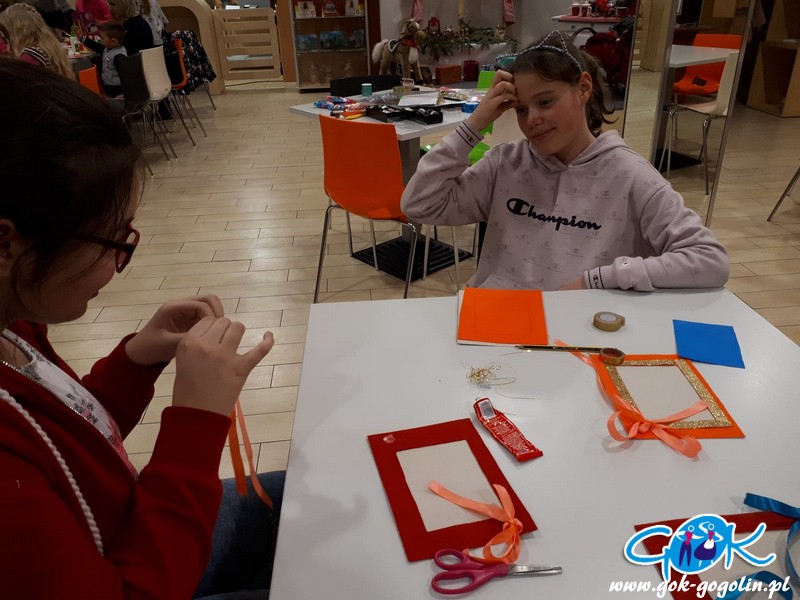 W środę 15 stycznia 2020 r. w Nutka Cafe działającej przy Gminnym Ośrodku Kultury w Gogolinie odbyły się warsztaty „Upominek dla Babci i Dziadka”. Blisko 30 uczestników zajęć wykazało się ogromnym zaangażowaniem oraz kreatywnością by przygotować prezenty dla swoich dziadków. Tymi upominkami będą piękne, ręcznie wykonane filcowe ramki na zdjęcia, którymi uczestnicy warsztatów obdarują swoich bliski już w przyszłym tygodniu.