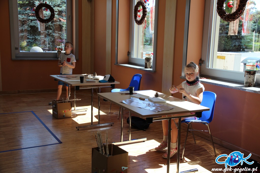 Wakacje to dla dzieci najwspanialszy czas w całym roku. Podczas ich trwania można w różny, ciekawy sposób spędzać wolne chwile. Pierwszego dnia wakacji w Gminnym Centrum Kultury w Gogolinie dzieci miały możliwość wykonania dwóch prac plastycznych. Pierwsza z nich polegała na ozdobieniu swojego pudełka do przechowywania, a druga na stworzeniu pejzażu z motywem zachodu słońca. Oprócz tego nie zabrakło zabawy z muzyką oraz gimnastyki. Rozpoczęcie wakacji należało do bardzo udanych, a przede wszystkim bezpiecznych!