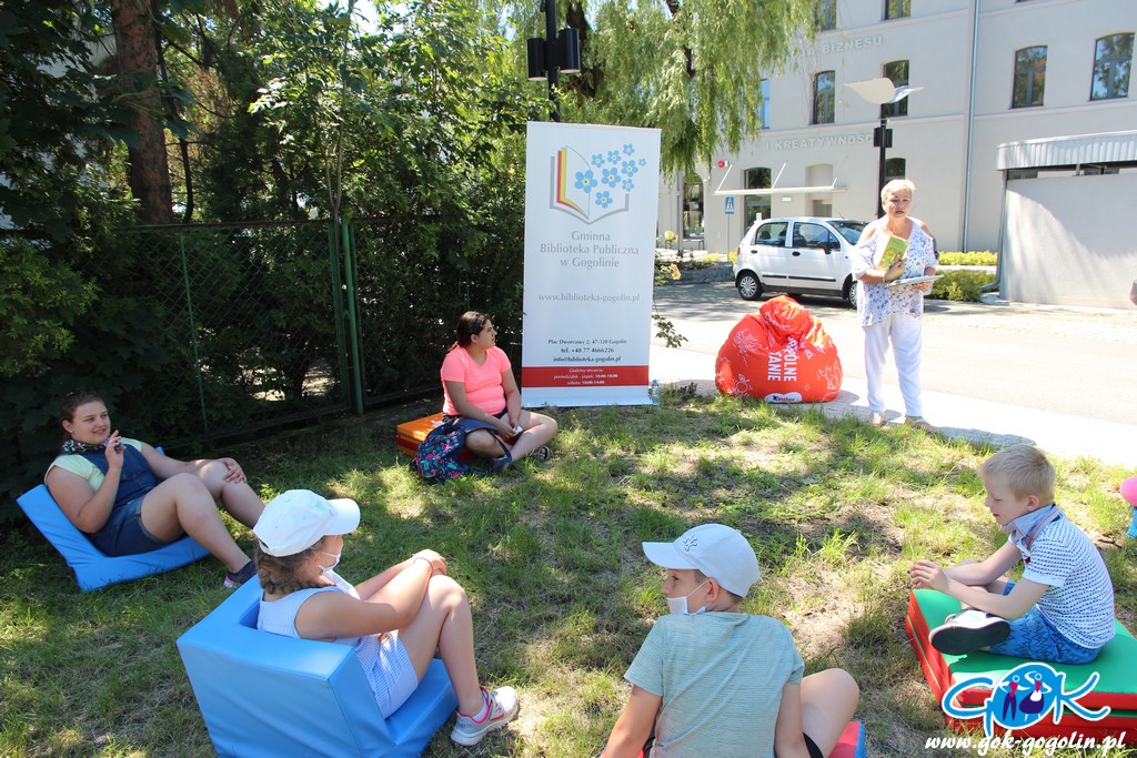 W przerwie między zajęciami, udano się na świeże powietrze, aby przy Gminnej Bibliotece Publicznej w Gogolinie, posłuchać lektury „Franklin i noc pod namiotem”. Nie mogło zabraknąć także pytań i ciekawostek. To był bardzo udany czas.