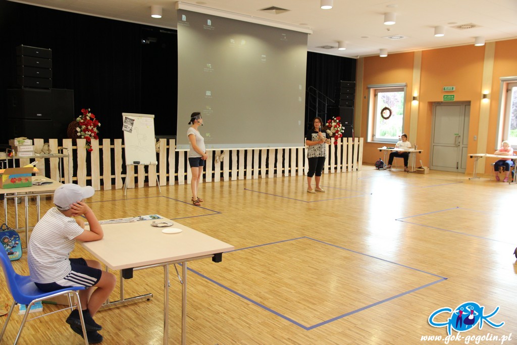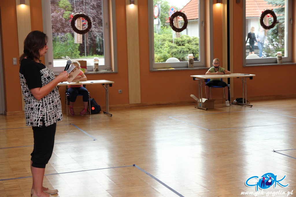 Piątkowe zajęcia wakacyjne w Gminnym Centrum Kultury w Gogolinie rozpoczęły się od spotkania z panią Ewą z Gminnej Biblioteki Publicznej w Gogolinie, która opowiedziała najbardziej znane lokalne legendy związane z Gminą Gogolin. Nie zabrakło opowiadań o kapliczce "Na Bagnie" oraz Karliku i Karolince.