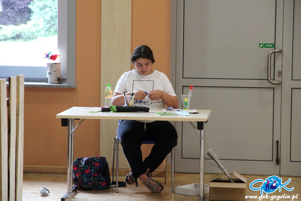 W czwartek 2 lipca 2020 r. podczas zajęć wakacyjnych w Gminnym Centrum Kultury w Gogolinie dzieci dokończyły swoje flamingi. Następnie wykonały pająki z papierowych rolek. Ponadto dowiedziały się wielu ciekawostek na temat tych nie zbyt lubianych, czasem budzących strach a jednak pożytecznych stworzeń.