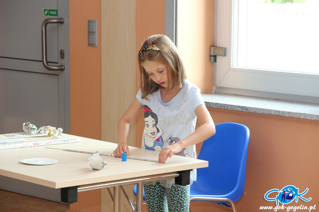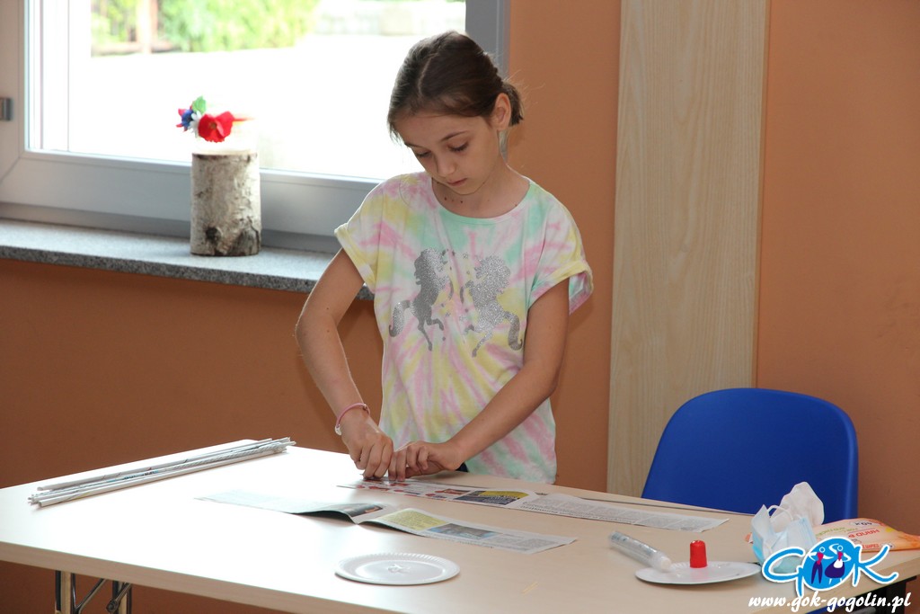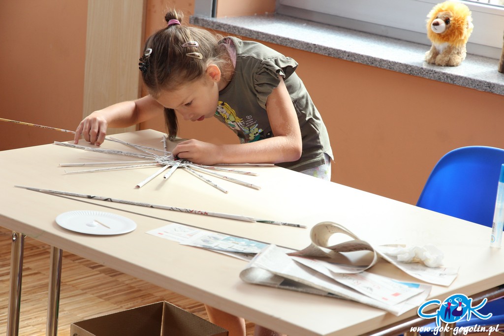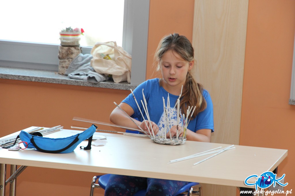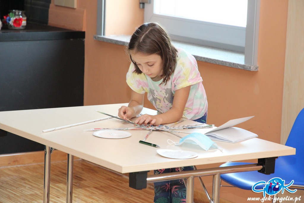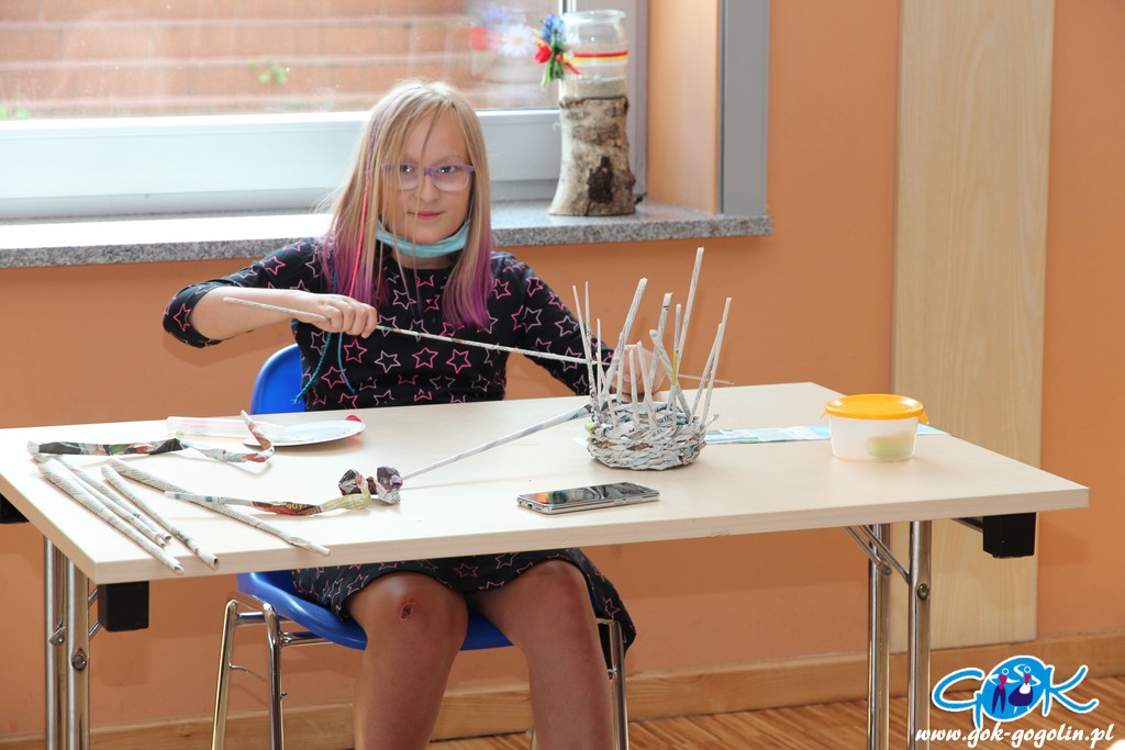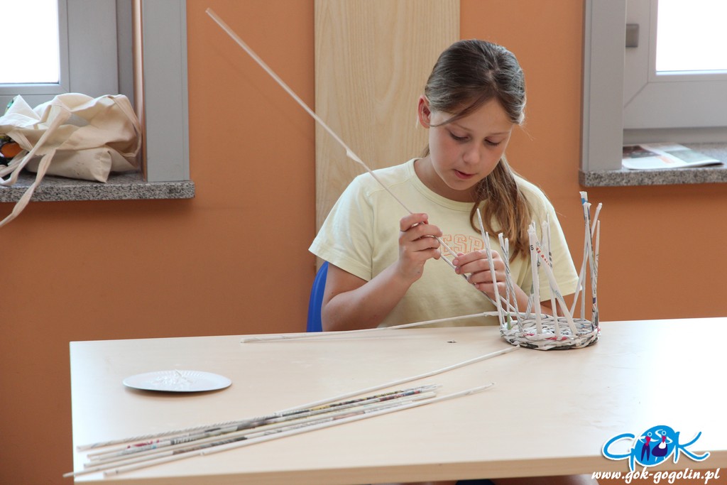 Podczas kolejnych zajęć (21.07.2020 r.) w Gminnym Centrum Kultury w Gogolinie, dzieci tworzyły koszyki z papierowej wikliny. Jest to ekologiczny materiał DIY („zrób to sam”), który stanowi doskonały sposób na spożytkowanie makulatury – zwłaszcza niepotrzebnych już gazet.
