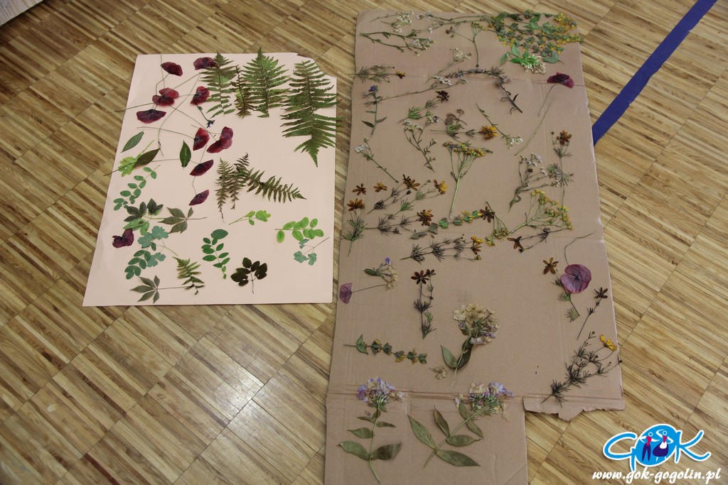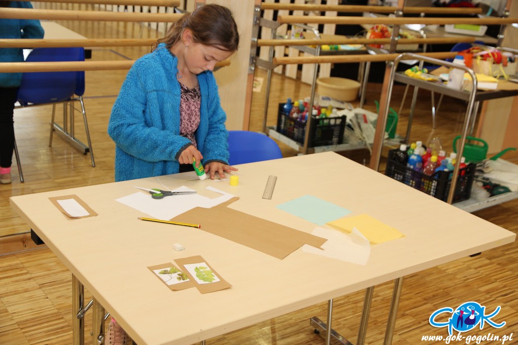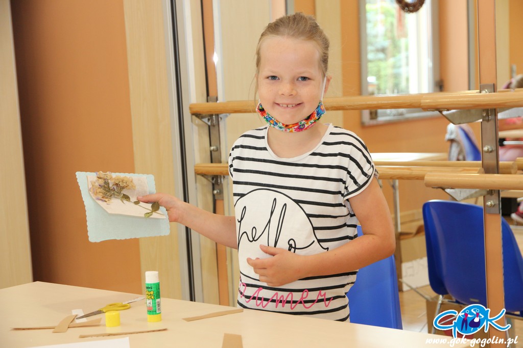 Podczas czwartkowych zajęć w Gminnym Centrum Kultury w Gogolinie dzieci próbowały „zatrzymać lato”. Przygotowane wcześniej zasuszone kwiaty i liście zostały wykorzystane do zrobienia przepięknych obrazków oraz zakładek do książek.