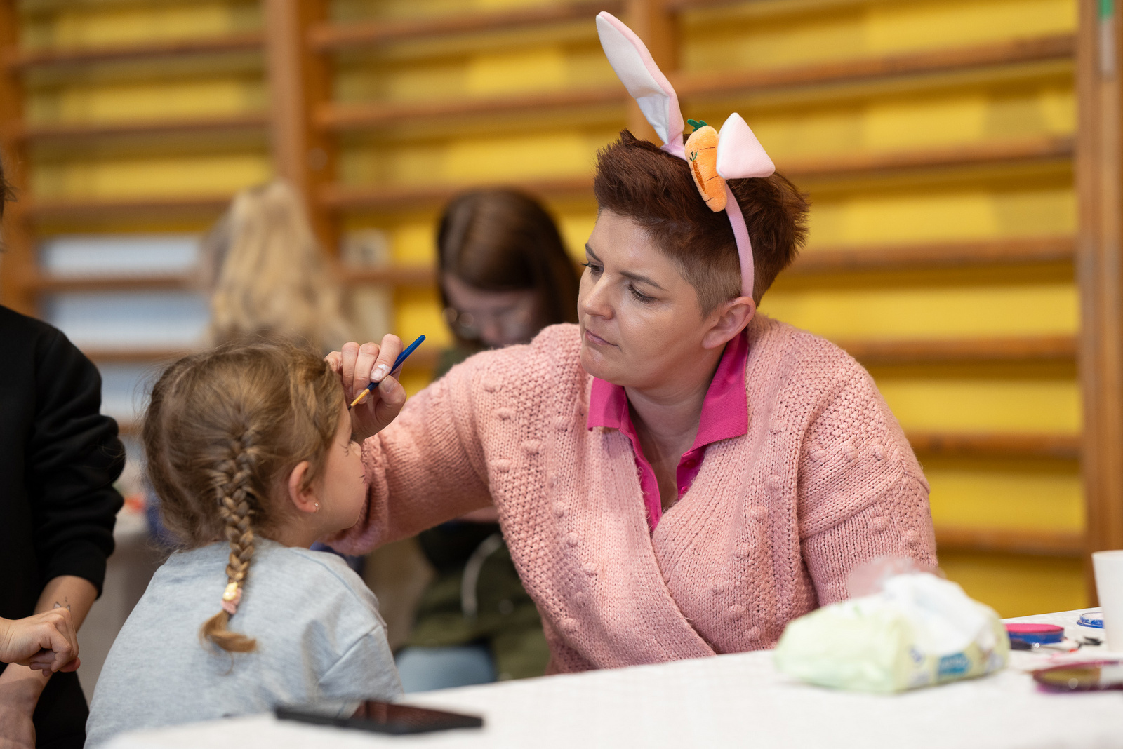 Najmłodsi uczestnicy jarmarku również nie mogli narzekać na nudę. Na dzieci czekało malowanie EKO pisanek ze Świetlicą Podwórkową z CUS, bajkowy kącik czytelniczy z Gminną Biblioteką Publiczną, kolorowe malowanie buziek z GOK oraz wizyta uroczej maskotki – Kubusia Puchatka, który rozdawał słodkie niespodzianki. Radości, śmiechu i kreatywnej zabawy było co niemiara.