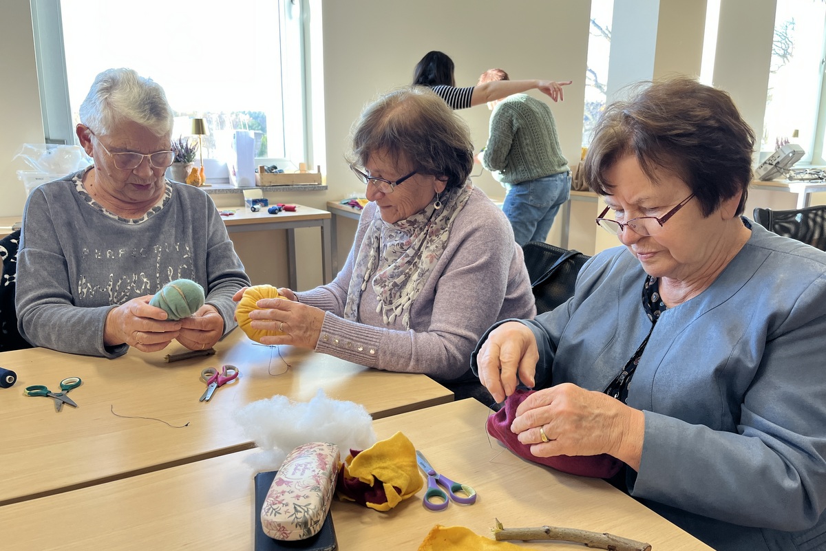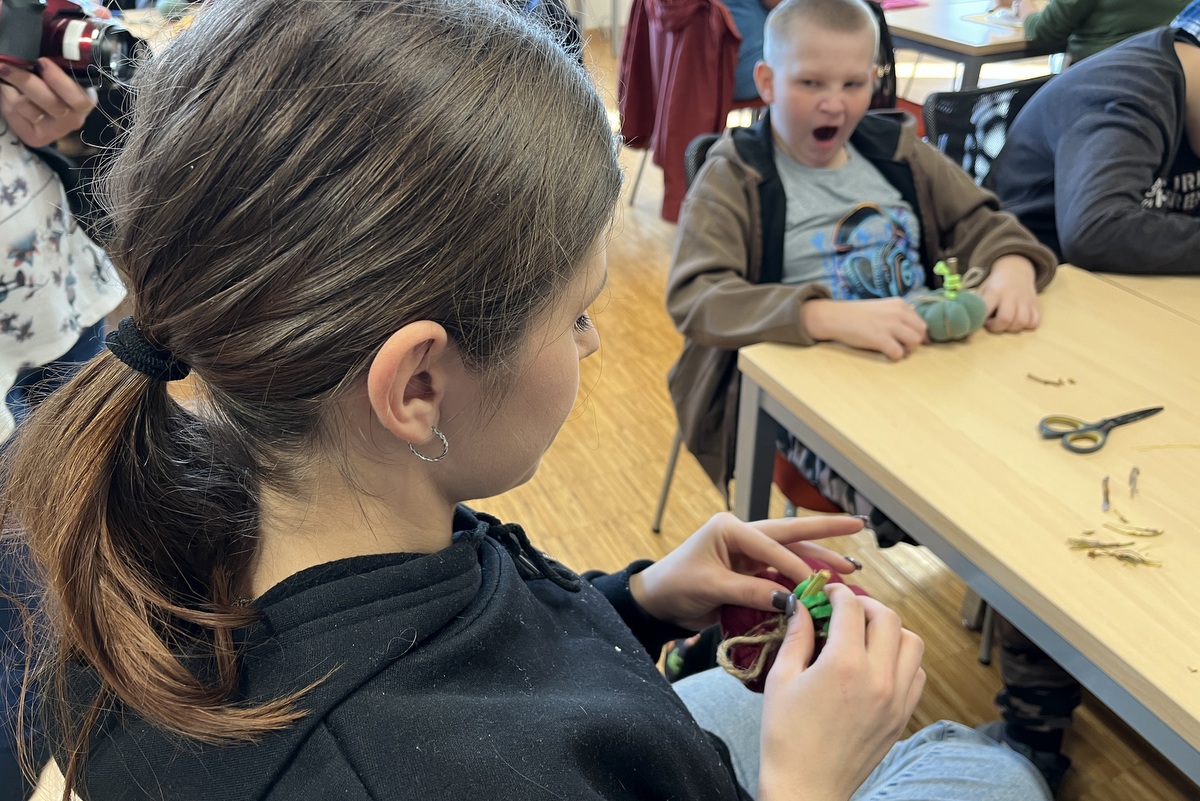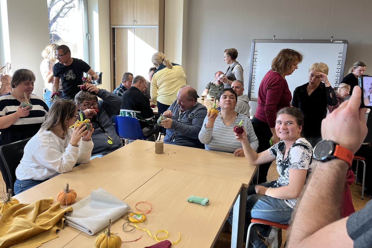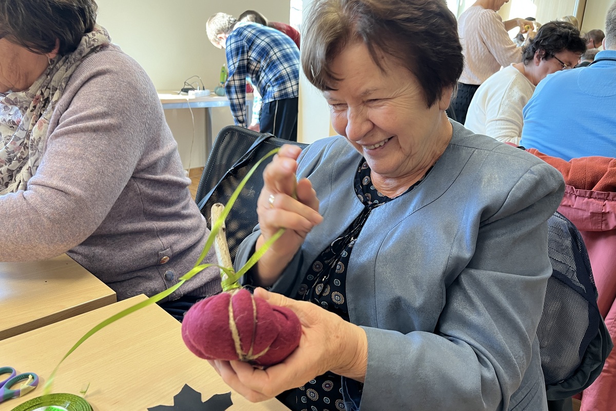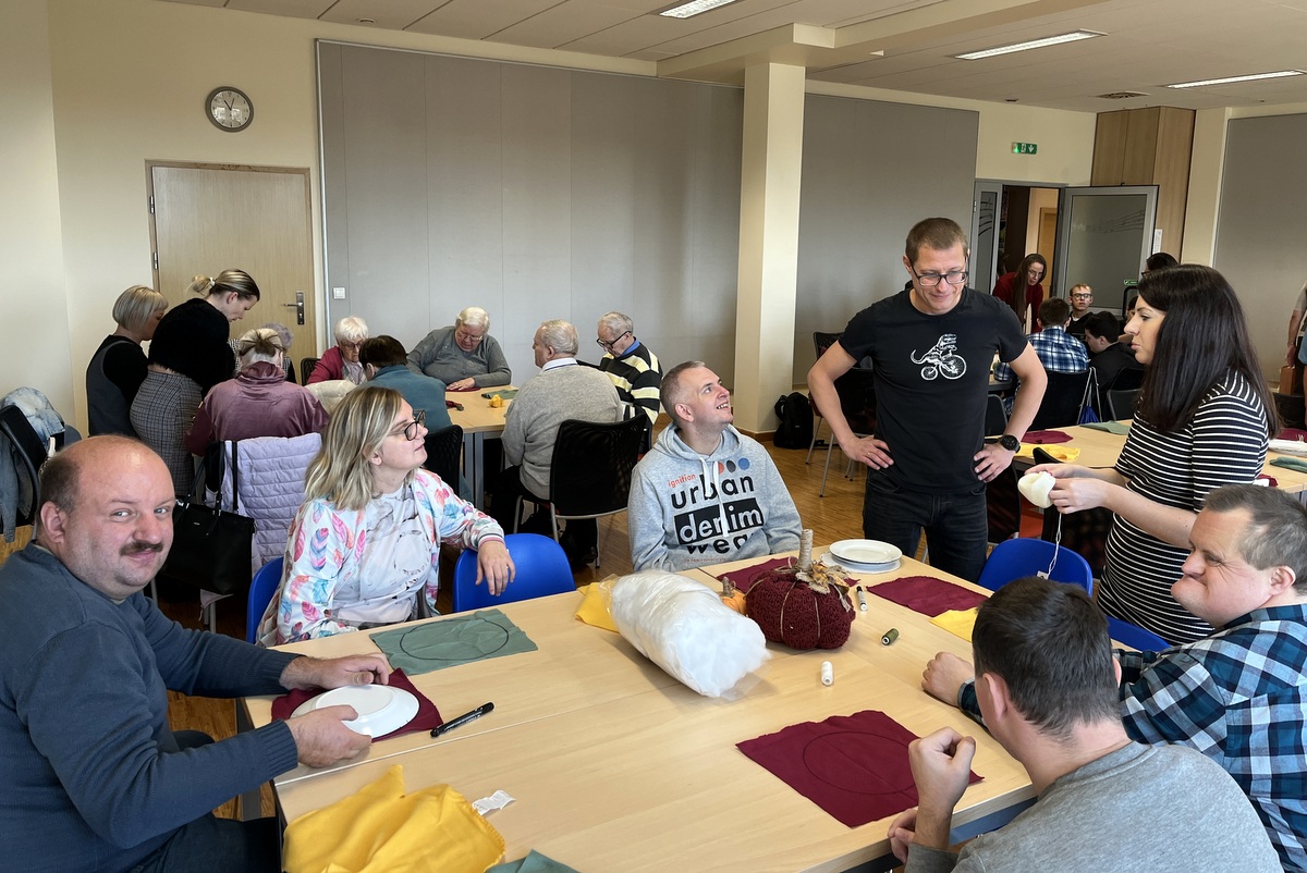 Pod okiem instruktorek – pani Katarzyny i pani Soni z GOK-u – uczestnicy mieli okazję własnoręcznie wykonać ozdobne dynie z materiału. Warsztaty stały się okazją do rozwijania kreatywności, integracji oraz wspólnego spędzenia czasu w twórczej atmosferze.