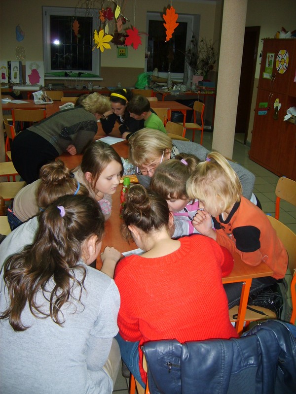 Z pomocą naszych specjalistek wszystko udało się jednak znakomicie. Nie jedno słowo w gwarze śląskiej sprawiło nam kłopot, ale po dłuższych dyskusjach ustalaliśmy ich znaczenie.Z największą niecierpliwością czekaliśmy jednak na „QUIZ ŚLĄSKI" ze znajomości pojęć, słów i zwyczajów śląskich. Powodem owej niecierpliwości były oczywiście cukierki, które czekały na zdobywców największej ilości punktów. Byliśmy podzieleni na dwie grupy. Rywalizacja była niesamowita, a kolejne zadania zaskakiwały nas coraz bardziej... W czasie rozwiązywania quizu było wiele śmiechów, ale najbardziej zaskoczyło nas to, że czasem trzeba solidnie się „nagłówkować", aby dobrze przetłumaczyć słowa w gwarze śląskiej. Przykładowo: kto z przeglądających stronę GOK'u wie, jak określić kto to jest „miglanc" lub co oznacza „okludzić". A wiecie co jest głównym składnikiem zupy „wodzionki"? Odpowiedzi nie podajemy, niech również inni mieszkańcy naszej gminy mają szansę pomyśleć... Pielęgnujmy naszą gwarę, bo jakże jest ciekawa, czasem zabawna i wcale nie taka prosta jakby się wydawało... Życzymy powodzenia w „godaniu"