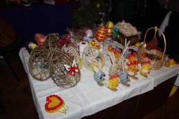 Na zaproszenie Wójta Łodygowic (miasta partnerskiego) w minioną niedzielę palmową (25.03.br.) Gmina Gogolin zaprezentowała się ze stoiskiem promocyjnym na gminnym I KIERMASZU WIELKANOCNYM w Łodygowicach. W imieniu Burmistrza Gogolina, Gminę reprezentował Gminny Ośrodek Kultury na czele z Dyrektor Iwoną Cimek, Klub Seniora oraz twórczynie ludowe z gminy Gogolin. Na naszym stoisku można było podziwiać różnorodne ozdoby, stroiki, zajączki, kurczaczki, ręcznie szydełkowane serwety, dekoracje do koszyczków wielkanocnych itp. przygotowane przez nasze świetlice młodzieżowe, Klub Seniora. Ale największe zainteresowanie budziły gogolińskie kroszonki, które wyglądały jak prawdziwe dzieła sztuki. Również podczas kiermaszu mieszkańcy Łodygowic mieli okazję zapoznania się z techniką wykonywania kroszonek oraz sposobem posługiwania się nożykiem.