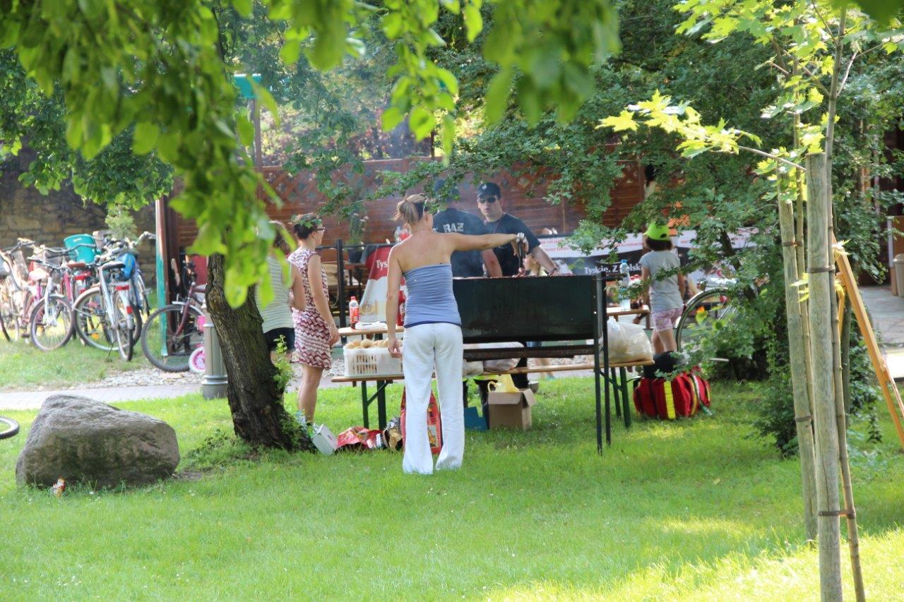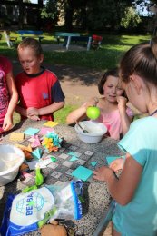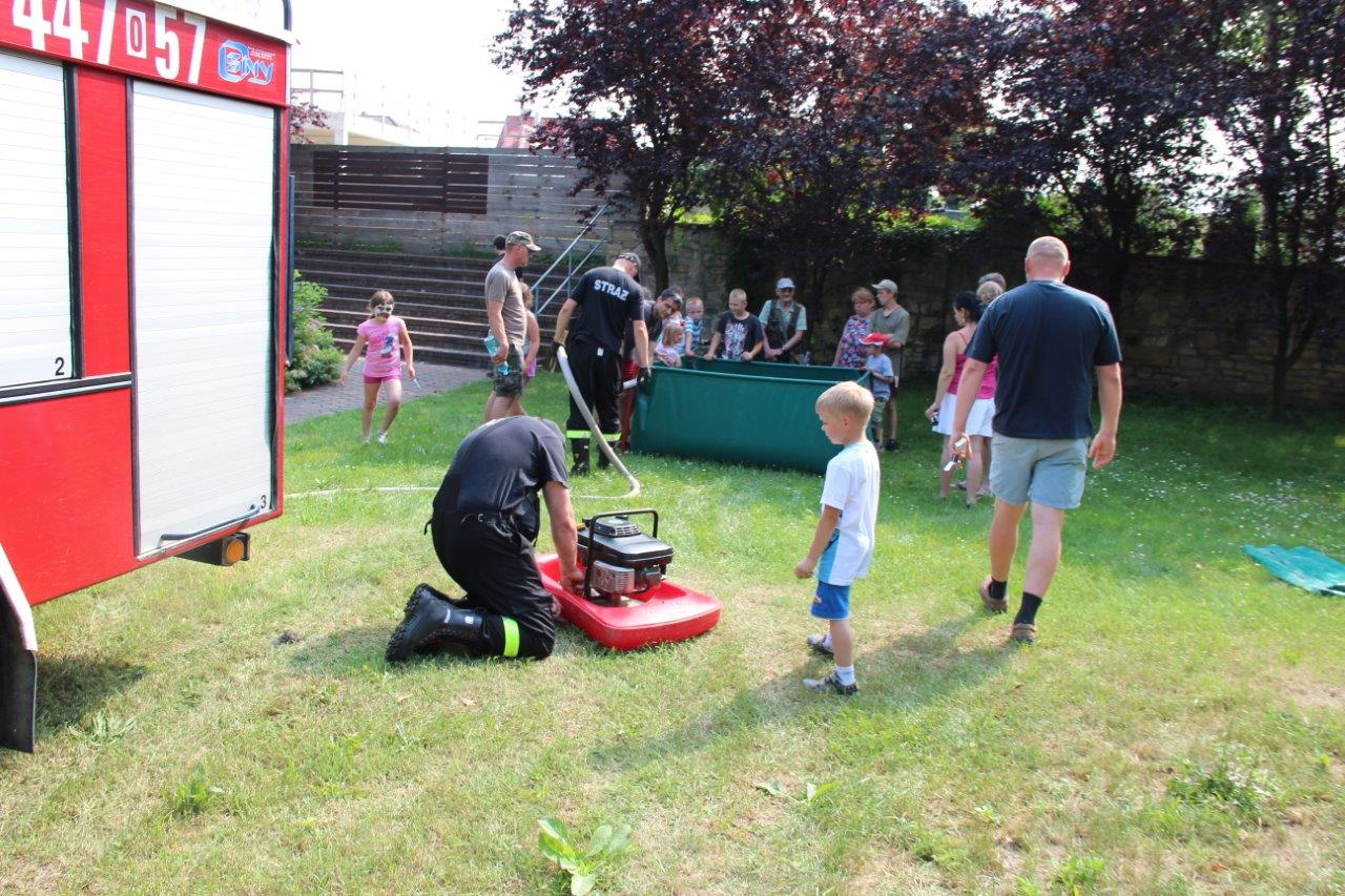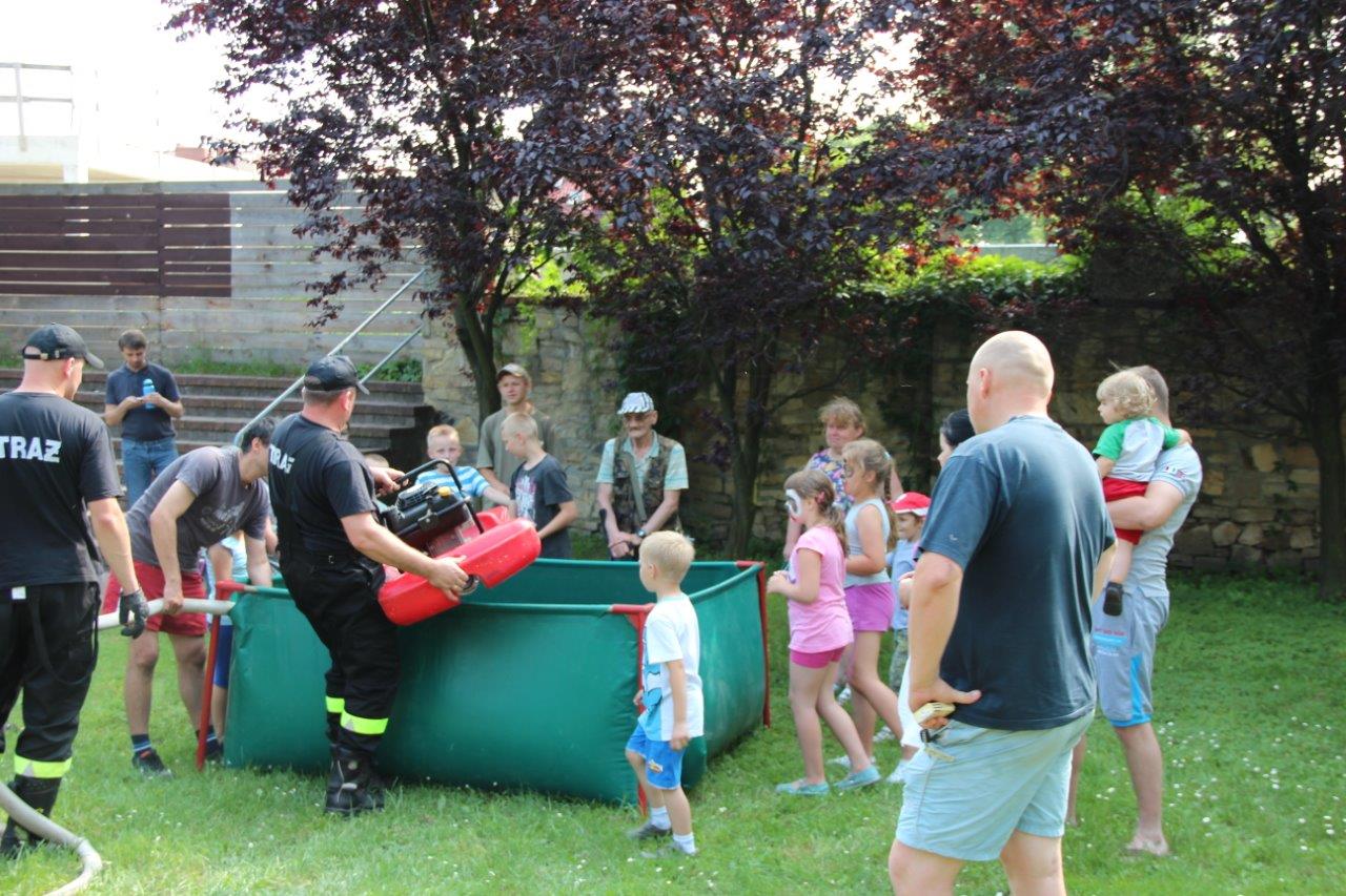 Kurtyna wodna, którą włączyli strażacy dała ukojenie niejednemu maluchowi podczas tego upalnego dnia. Komisariat Policji w Gogolinie udostępnił wóz policyjny i motocykl aby każdy mógł wsiąść i poczuć się jak prawdziwy policjant. Podczas pokazów służb trwały liczne gry i zabawy. Pracownice naszych świetlic przygotowały warsztaty. Przy stoliku z pracami ręcznymi dzieci wykonywały przeróżne ciekawostki z papieru, bibuły, sznurka, kleju itp..... Ustawiła się długa kolejka (głównie dziewczynek) aby upiększyć sobie swoje dłonie i paznokcie, pomalować sobie buzię. Punkt gastronomiczny zachęcał na kiełbaski z grilla, a dla naszych spragnionych milusińskich były przygotowane darmowe napoje, ciastka i lody.