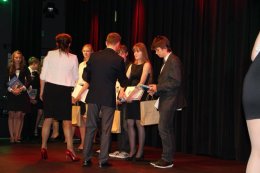 Scena i sala widowiskowa w Gminnym Centrum Kultury w Gogolinie, gdzie odbywała się uroczystość zakończenia roku szkolnego 2012/2013 w dniu 28.06.szczelnie wypełniona została absolwentami Zespołu Szkół w Gogolinie.