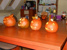 31.10.br z okazji halloween postanowiliśmy zrobić konkurs na najstraszniejszą i najpiękniejszą dynię halloweenową. Celem tych zajęć była integracja uczestników oraz mile spędzony wspólnie czas. Dzieci wycinały śmieszne i straszne dynie do których włożyliśmy świeczki. Niesamowite było to jak wyglądały gdy wyłączyliśmy światła. Do tego mnóstwo gier i zabaw zręcznościowych tylko dla odważnych! Nie zabrakło cukierków i innych słodyczy.