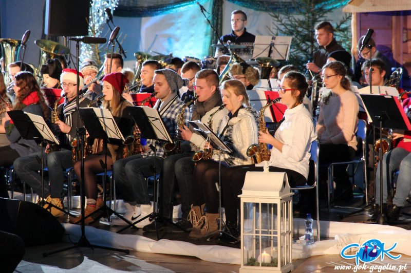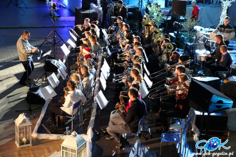 Koncert z kolędami poprzedziły występy Miejskiej Młodzieżowej Orkiestry Dętej która pod batutą Rafała Jilga, wykonała takie przeboje, jak: „Feliz navidad”, „White Christmas” czy „Z kopyta kulig rwie”.