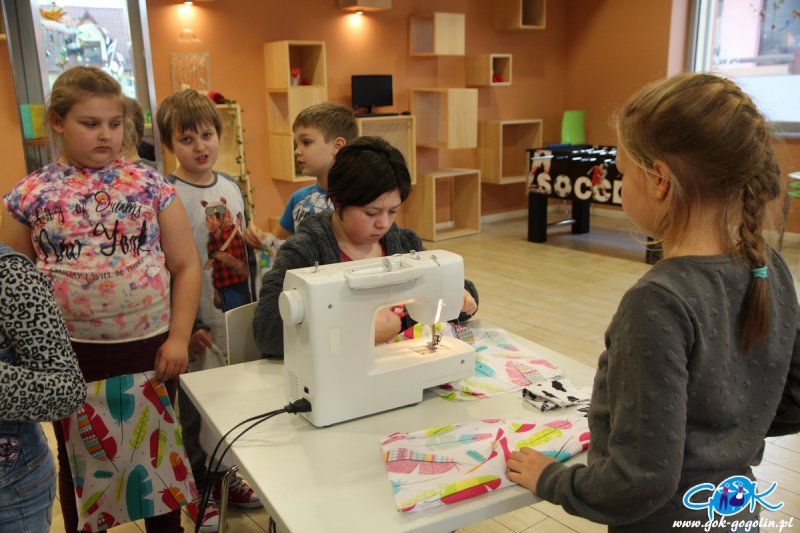 Dnia 24.03.2017r. w Gminnym Ośrodku Kultury w Gogolinie w Nutka Cafe odbyły się warsztaty z szycia. Każdy z uczestników miał za zadanie wykonać worek na swoje skarby. Gdy już wzór został wycięty dzieci, młodzież i dorośli naszywali wycięte wcześniej z filcu swoje inicjały bądź inne ozdoby. Dzięki pomocy Pani Eweliny Kosztubajda oraz Pani Magdaleny Janik nasza praca była sprawniejsza, to one pozwoliły dzieciom na obcowanie z maszyną krawiecką. Dziękujemy im bardzo za pomoc i za życzliwość, którą wykazują się podczas warsztatów. Wszyscy uczestnicy wyszli zadowoleni i pełni nadziei, że to nie ostatnie warsztaty z szycia.
