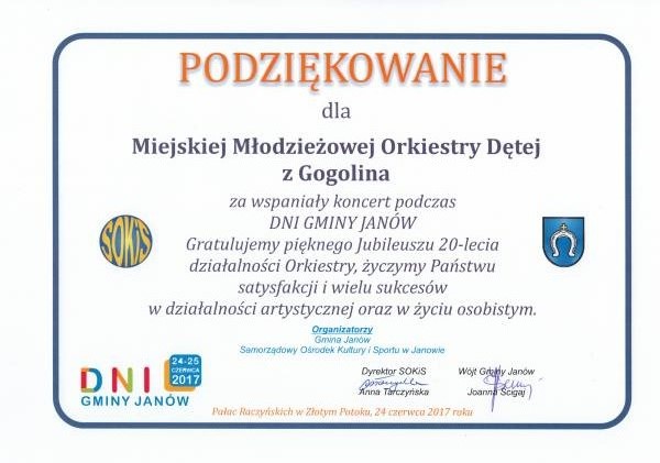 W sobotę 24 czerwca 2017 r. w ramach Dni Gminy Janów odbyła się w Pałacu Raczyńskich promocja książki z wierszami o Złotym Potoku pt. „Złotopotockie impresje”. Imprezę uświetnił koncert Miejskiej Młodzieżowej Orkiestry Dętej z Gogolina.