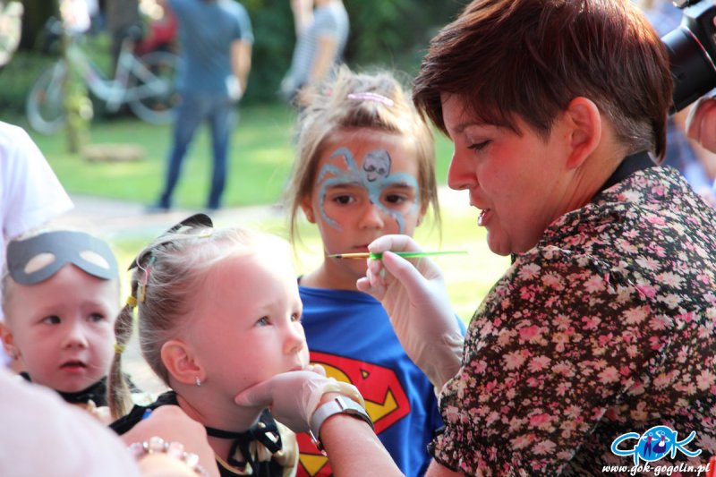 Impreza rozpoczęła się o godz. 15:00 wspólnymi zabawami i konkursami z MRM Gogolin, wodzirejem MIRONEM w podróż dookoła świata, oraz z OPS. Było przeciąganie liny, najdłuższe skakanie na skakankach, zabawy „na morzu” z chustą, tańce z rodzicami, przenoszenie „gorących klusek” do „garnka”, quizy, smakołyki superbohaterów, konkurs na najciekawszy strój, oraz sporo odmiennych, w których mali bohaterzy chętnie brali udział.