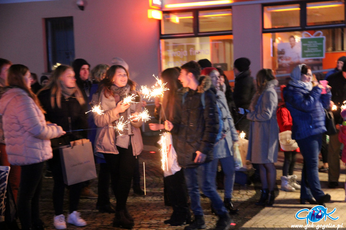 O godz. 20.00 wszyscy wyszli przed budynek Gminnego Centrum Kultury gdzie, w ramach tradycyjnego „światełka do nieba” wspólnie w blasku zimnych ogni zaśpiewali w rytmach Wielkiej Orkiestry Świątecznej Pomocy.