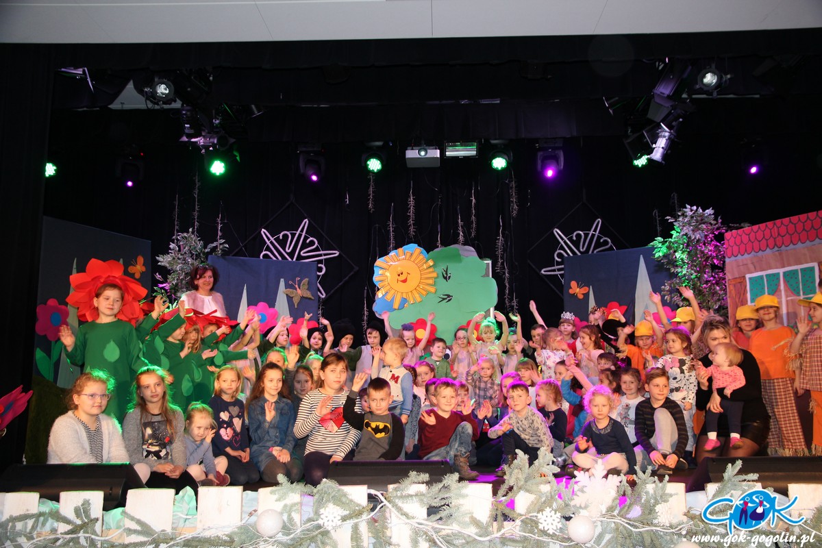 W sobotę 23.02.2019 r. w Gminnym Centrum Kultury odbyła się pierwsza w tym roku bajka z cyklu "Witajcie w naszej bajce". Publiczność miała okazję zobaczyć wspaniałe widowisko w wykonaniu grupy Krasnoludków z Publicznego Przedszkola Nr 1 w Gogolinie. Dzieci zaprezentowały bajkę pt:" Królewna Śmieszka i Ekoludki". Wspaniałe stroje, scenografia oraz świetna gra małych aktorów sprawiły, że bajka ta wypadała znakomicie. Do występu grupę przygotowała pani Barbara Michalik.