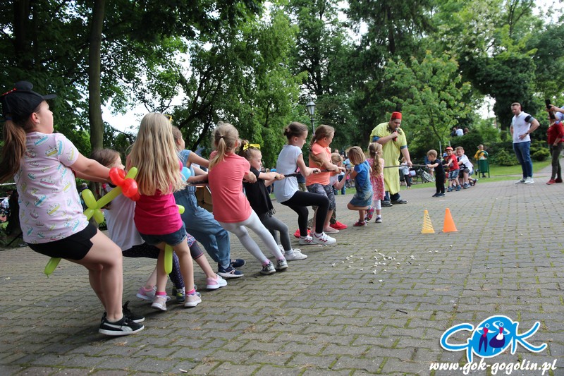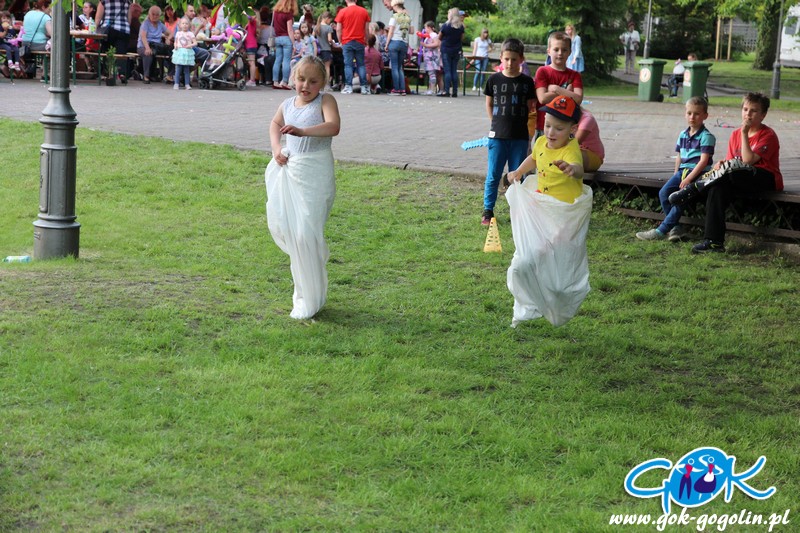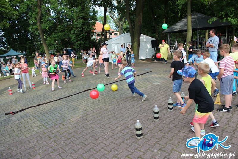 Przygotowano również kącik plastyczny przygotowany przez Świetlicę Środowiskową w Gogolinie i uśmiechnięte miasteczko, w którym pracownicy Gminnego Ośrodka Kultury w Gogolinie oraz Gminnej Biblioteki Publicznej w Gogolinie malowali buzie, oraz tworzyli wspólnie z dziećmi balonowe cudeńka oraz niezwykłe bańki mydlane. Nie zabrakło także zawodów sportowych.