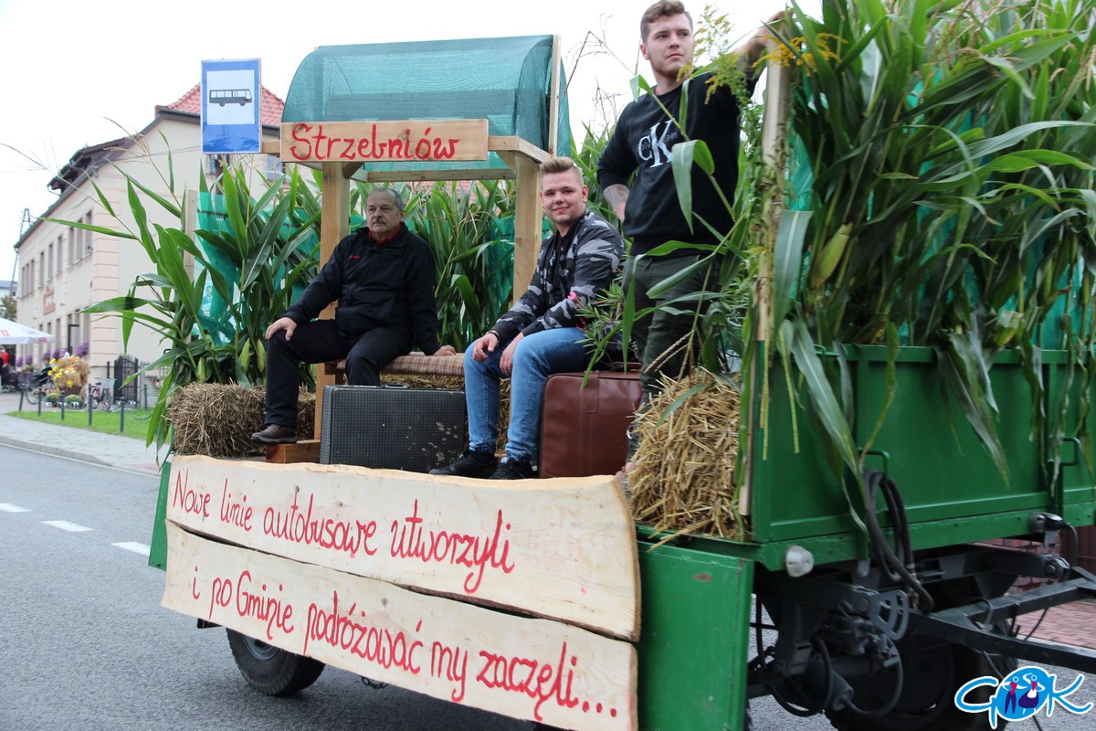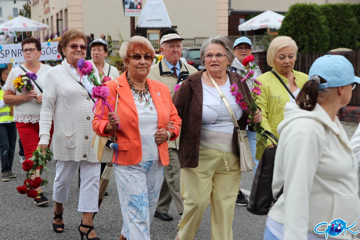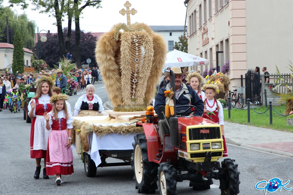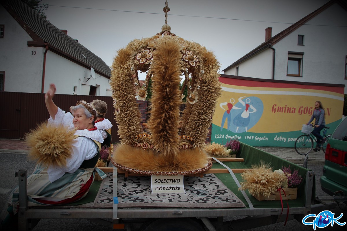 W godzinach popołudniowych pod Izbą Tradycji uformował się barwny korowód, który przemaszerował przez centrum miejscowości do przypałacowego parku, gdzie odbyły się oficjalne uroczystości. Korowód prowadziła Miejska Młodzieżowa Orkiestra Dęta z Gogolina oraz Mażoretki ArriVa funkcjonujące przy Gminnym Ośrodku Kultury w Gogolinie. Tradycyjnie można było podziwiać pięknie przyozdobione przyczepy, wozy z humorystycznymi scenkami rodzajowymi, bogato zdobione – misternie wykonane korony oraz wieńce dożynkowe, czy płody rolne lokalnych rolników, ogrodników i działkowców. W przemarszu wzięli udział również przedstawiciele sołectw i dzielnic, gminnych jednostek organizacyjnych, placówek oświatowych, stowarzyszeń i lokalnych grup działania, oraz uczestnicy konkursu „Rowerem w dożynkowym korowodzie”.
