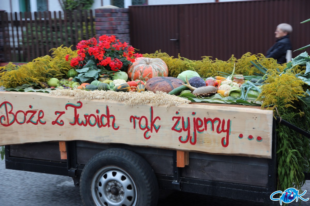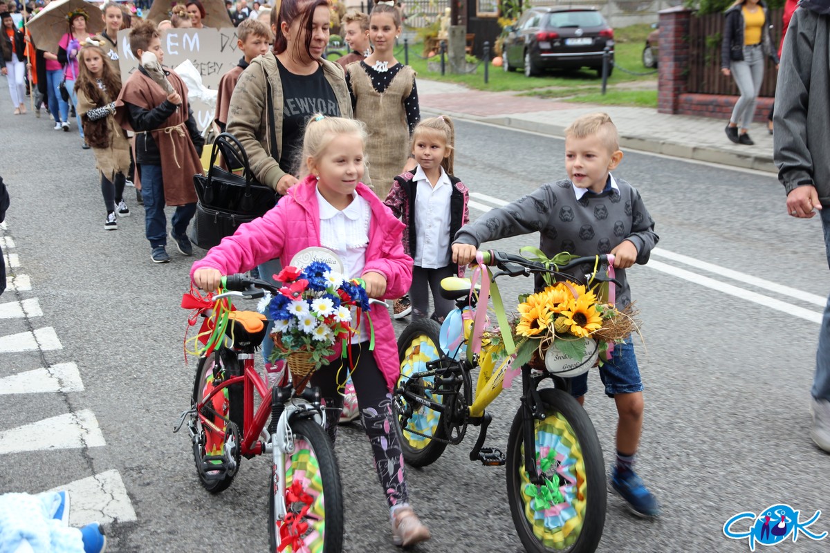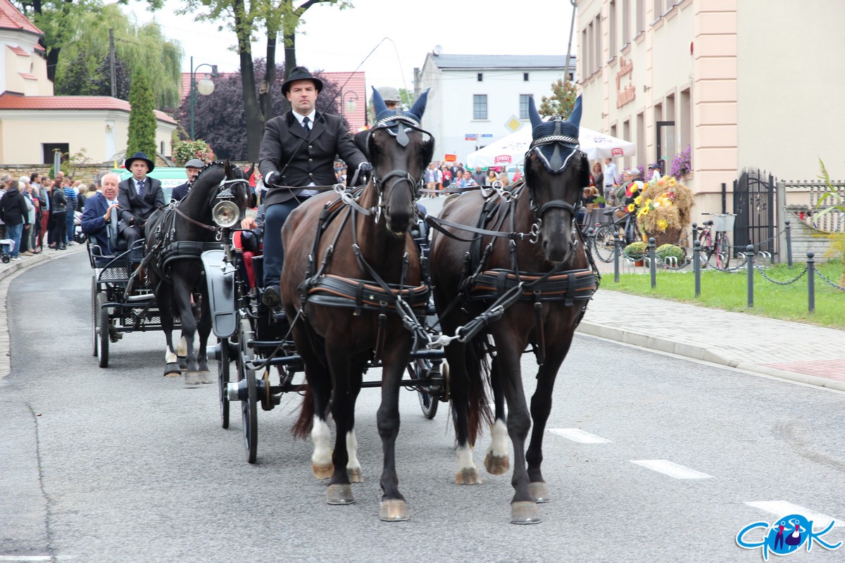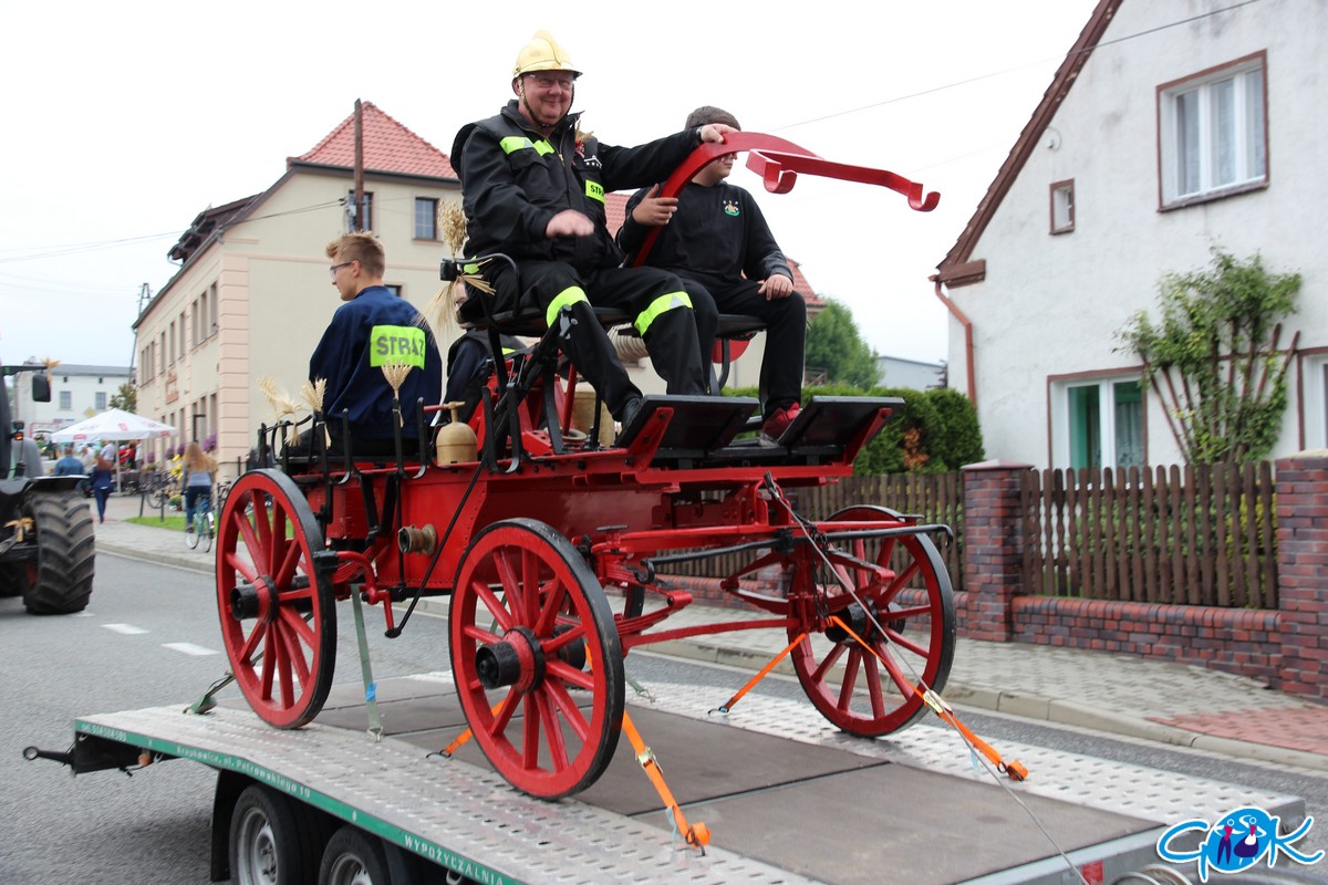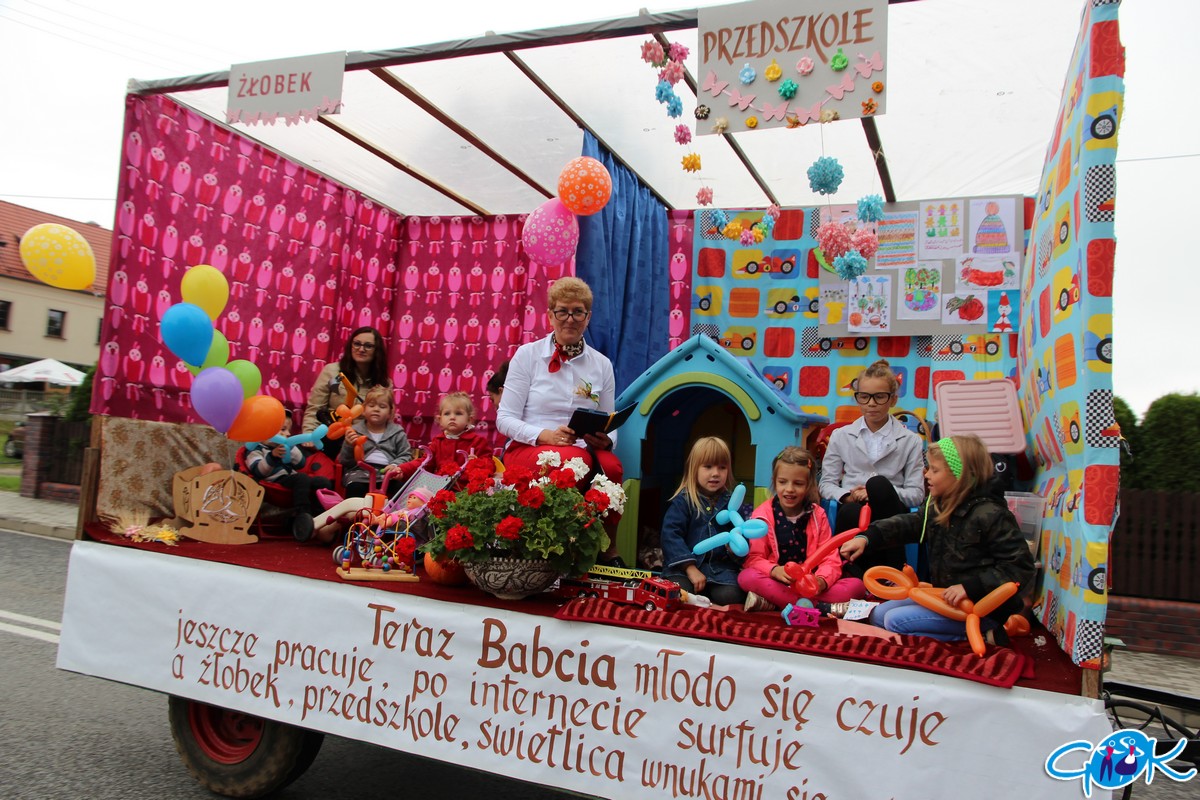 W godzinach popołudniowych pod Izbą Tradycji uformował się barwny korowód, który przemaszerował przez centrum miejscowości do przypałacowego parku, gdzie odbyły się oficjalne uroczystości. Korowód prowadziła Miejska Młodzieżowa Orkiestra Dęta z Gogolina oraz Mażoretki ArriVa funkcjonujące przy Gminnym Ośrodku Kultury w Gogolinie. Tradycyjnie można było podziwiać pięknie przyozdobione przyczepy, wozy z humorystycznymi scenkami rodzajowymi, bogato zdobione – misternie wykonane korony oraz wieńce dożynkowe, czy płody rolne lokalnych rolników, ogrodników i działkowców. W przemarszu wzięli udział również przedstawiciele sołectw i dzielnic, gminnych jednostek organizacyjnych, placówek oświatowych, stowarzyszeń i lokalnych grup działania, oraz uczestnicy konkursu „Rowerem w dożynkowym korowodzie”.