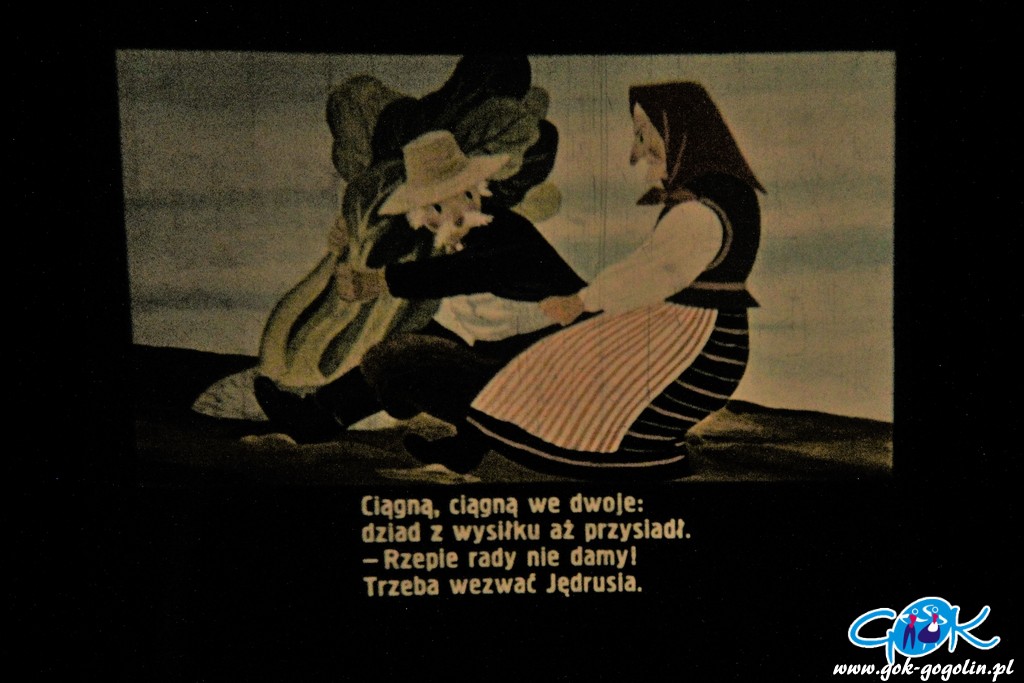 W piątek 14 lutego 2020 r. sala widowiskowa Gminnego Centrum Kultury zamieniła się w „Bajkowe kino z dawnych lat”. Gdy zgasły światła zapanowała cisza. Najmłodsi wpatrywali się w ilustracje i ze skupieniem wsłuchiwali się w czytany na głos tekst. Po każdej bajce chętnie zabierały głos w dyskusji na temat jej przekazu. Aby urozmaicić spotkanie dla dzieci przygotowano także kalambury i kolorowanki nawiązujące do obejrzanych projekcji.