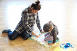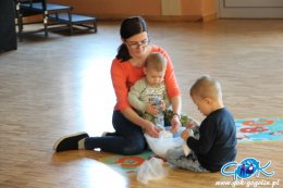 Na pierwszych zajęciach rodzice i dzieci mieli możliwość uczestniczyć w wielu grach i zabawach: przenieśli się w krainę zwierząt, lepili z plasteliny, wykonali pracę plastyczną, śpiewali i tańczyli a przy tym naprawdę świetnie się bawili! Zajęcia były także nauką współpracy i dzielenia się. Wszystkim najbardziej przypadły do gustu zabawy z chustą animacyjną oraz piłkami, które wywołały wiele radości! Nie mogło zabraknąć także czasu na swobodną zabawę, interakcję z innymi dziećmi i rodzicami w bezpiecznym otoczeniu, pełnym atrakcji.
