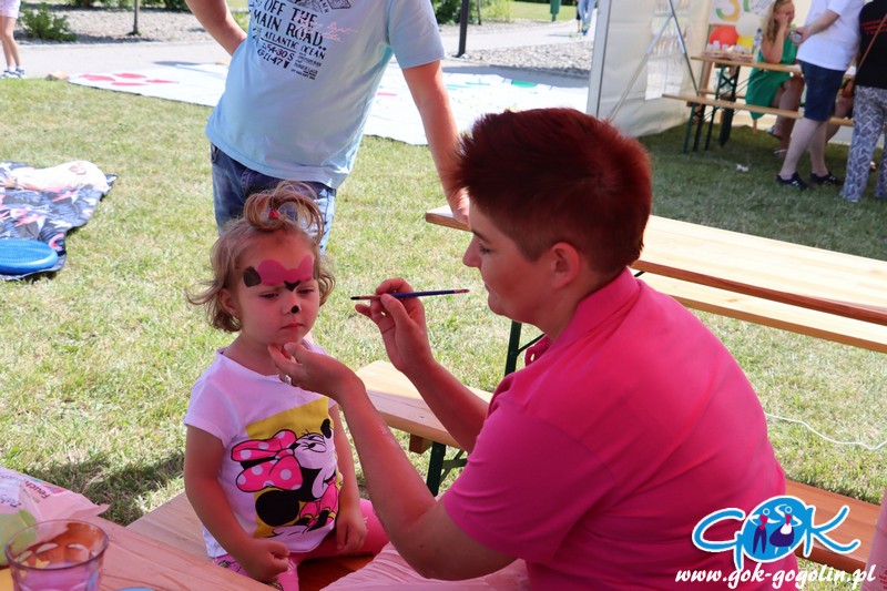 - Strefa chillout – przygotowana przez Gminny Ośrodek Kultury w Gogolinie oraz Gminną Bibliotekę Publiczną w Gogolinie. To właśnie tam można było zrelaksować się na leżaku, kocyku, wspólnie poczytać książkę, wykonać własną zabawkę sensoryczną a także skorzystać z malowania twarzy, balonowych cudeniek czy baniek mydlanych w ramach „uśmiechniętego miasteczka”.
