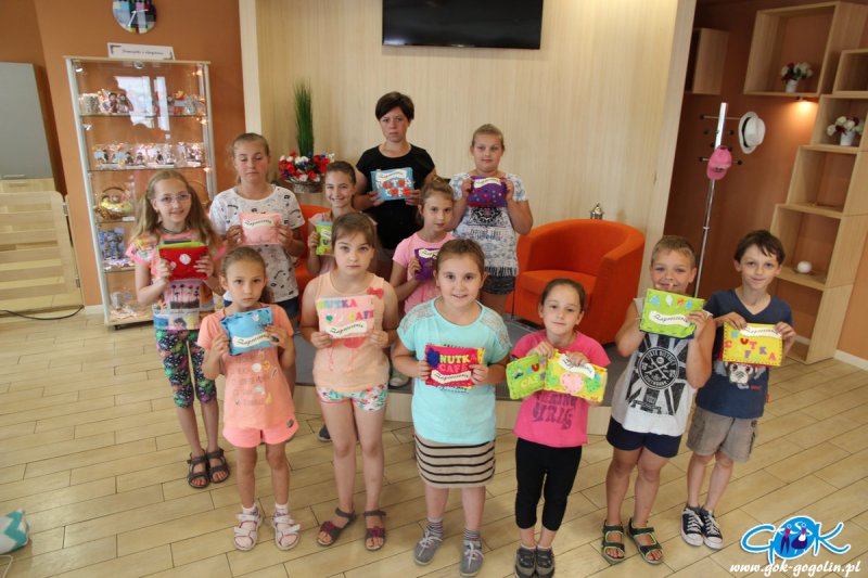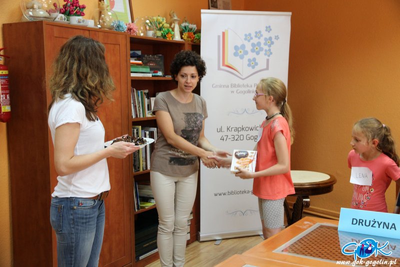 Dnia 30 czerwca 2017 roku w ramach współpracy Gminnego Ośrodka Kultury w Gogolinie z Gminną Biblioteką Publiczną w Gogolinie uczestnicy zajęć wakacyjnych w Nutka Cafe mieli możliwość poznanian zawodu bibliotekarza. Na początku spotkania Pani Dominika Dąbrowska wraz z Panią Kornelią Stobrawą opowiedziały nam na czym polega praca w bibliotece następnie wspaniale zorganizowały teleturniej znany nam wszystkim pt.”Biblioteczna Familiada”. Po skończonym teleturnieju dzieci wzięły udział w warsztatach plastycznych podczas których każdy stworzył swoją zakładkę. Na zakończenie naszego spotkania dzieci otrzymały cukierki oraz książeczki z opowieścią o Karolince i Karliku.
