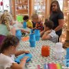 Na zajęciach plastycznych dzieci miały możliwość wykonania kolorowych pomponów, które przerobione zostały w wesołe stworki. Dołączony sznurek pozwolił na mnóstwo zabawy. Wykonane zostały także ozdoby związane z morzem: skarbonki w kształcie żółwika oraz papierowe akwaria.