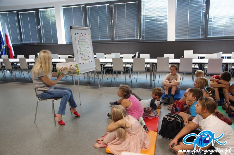 Poniedziałek rozpoczęto wyjściem do Gminnej Biblioteki Publicznej w Gogolinie. Dzieci otrzymały dużą dawkę informacji na temat książek, miały także możliwość dokładnie zobaczyć wszystkie pomieszczenia znajdujące się w Bibliotece. Odbyły się także ciekawe zajęcia: z zagadkami, obrazkami i oczywiście książką. Dla chętnych był dostęp do czasopism dziecięcych i młodzieżowych.